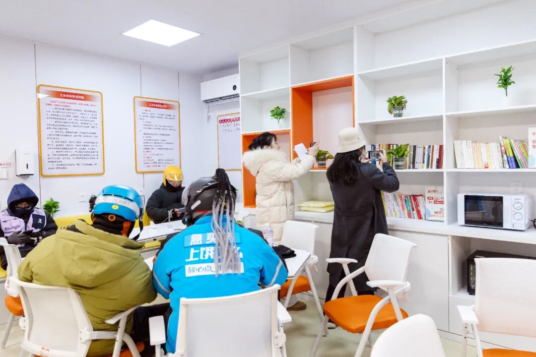 “以前想都不敢想,能有这样的休息场所。”有着五年从业经历的徐建利感慨道。作为工会驿站的直接受益者,他回忆道:“以前等单只能蹲在商铺门口吹冷风,到了中午,要么在电动车上凑合吃口凉饭,要么找片树荫蹲在地上吃,想找个舒服地方歇会儿太难了。”