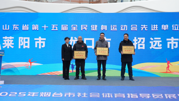 活动伊始,2025年全民健身赛事回顾短视频快速点燃现场氛围,带领观众重温全年健身热潮。莱阳、龙口、招远三地获颁山东省第十五届全民健身运动会先进单位奖。