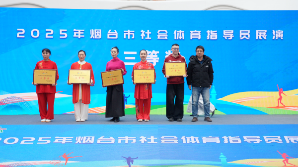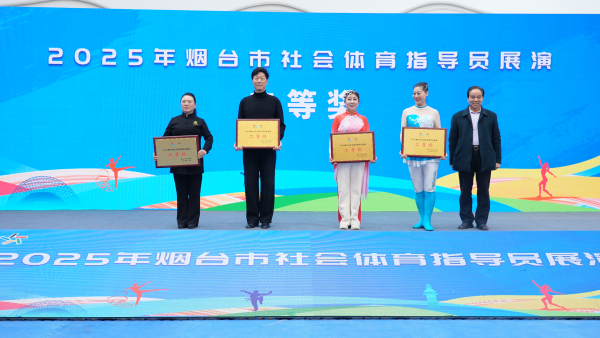 推介环节后,各区市社会体育指导员代表队登场展演,健身操活力满满、武术刚健有力、秧歌韵味十足,各类特色项目轮番上演,充分展现了社会体育指导员扎实的专业技能与良好精神风貌。最终,经专业评审评定,蓬莱区荣获展演一等奖,莱山区、招远市、福山区、莱阳市获二等奖,黄渤海新区、芝罘区、牟平区、龙口市、海阳市获三等奖。