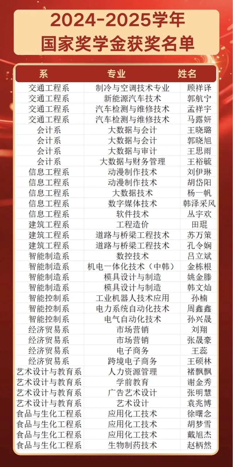 近日,教育部发布关于2024-2025学年度本专科生国家奖学金获奖学生名单的公告,烟台职业学院35名学生榜上有名。
