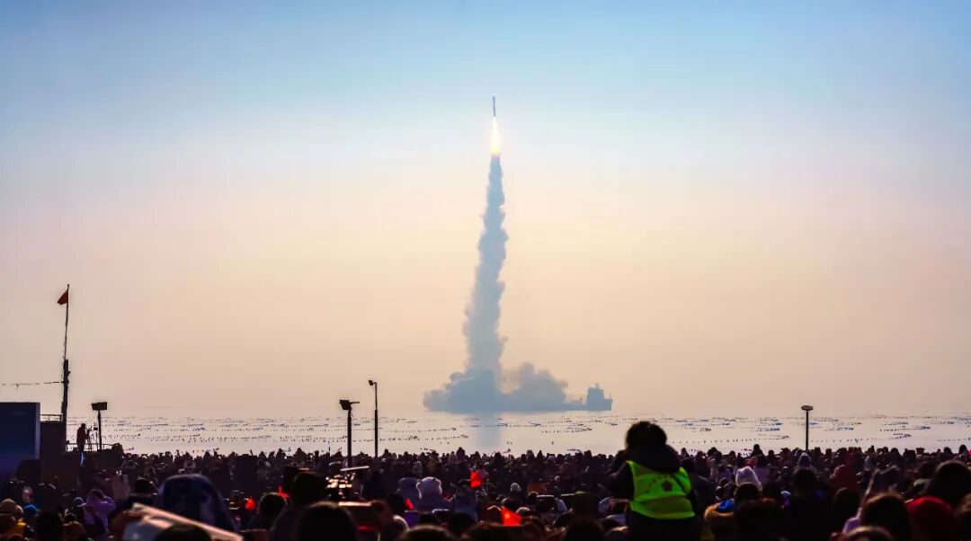 2025年1月13日上午,捷龙三号遥五运载火箭在海阳近海海域点火升空△