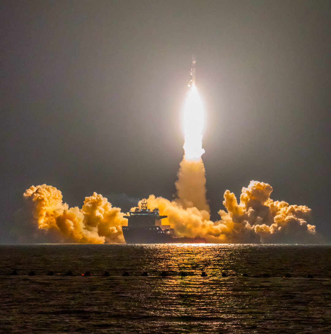 10月11日上午,由海阳总装出厂的引力一号(遥二)运载火箭以“东方航天港”号发射船为平台,在海阳附近海域发射升空△