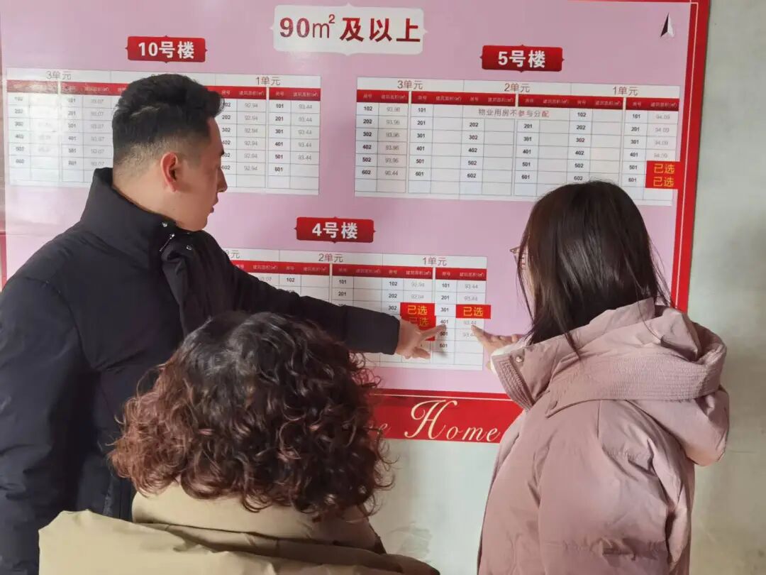 现场像于先生一样喜上眉梢的村民不在少数。他们或全家出动,或邻里结伴,围在公示板前仔细核对着楼栋房号。当看到彼此成为新邻居时,人群中不时响起惊喜的笑声与道贺。不少人拿起手机,第一时间与家人分享这份“稳稳的幸福”。