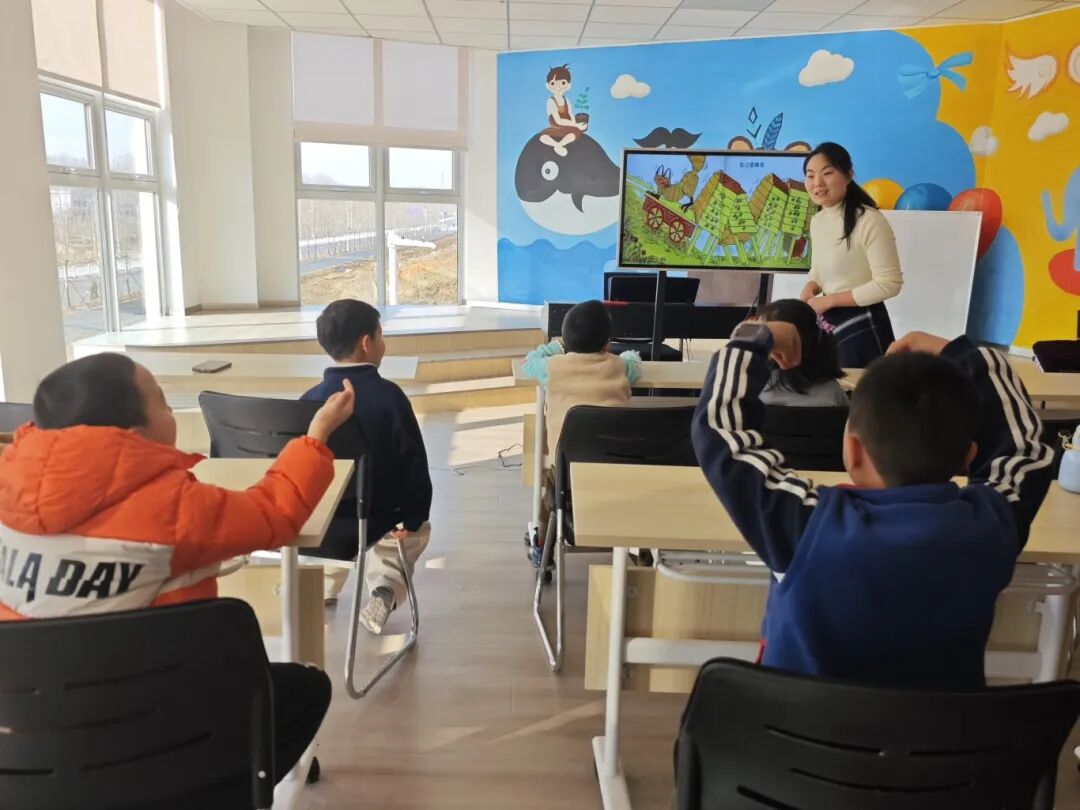 “自在悠闲、昂首挺胸的萝丝阔步向前,而身后斜眼伸舌的狐狸仿佛随时准备扑袭——它最终能得逞吗?”“此刻,你想对萝丝说些什么?”隋利娟老师以生动讲述结合互动提问,引导孩子们展开想象与表达。现场小朋友踊跃举手,各抒己见,在观点碰撞中逐渐领悟故事深层寓意:萝丝身上所体现的不仅是浑然天真的乐观,更是一种在未知环境中保持从容、在潜在风险面前依然向前的生活勇气。