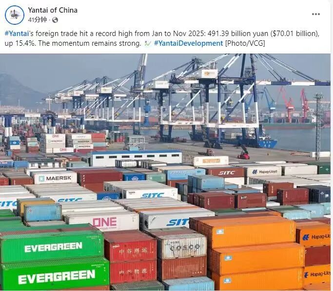 9.【烟台发展】4913.9亿元!前11个月烟台市外贸进出口总值再创新高