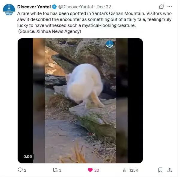 3.【宜居烟台】烟台磁山惊现“白狐仙子”(视频)