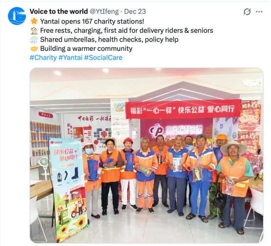5.【凤凰网】烟台167处慈善驿站免费服务骑手、老人