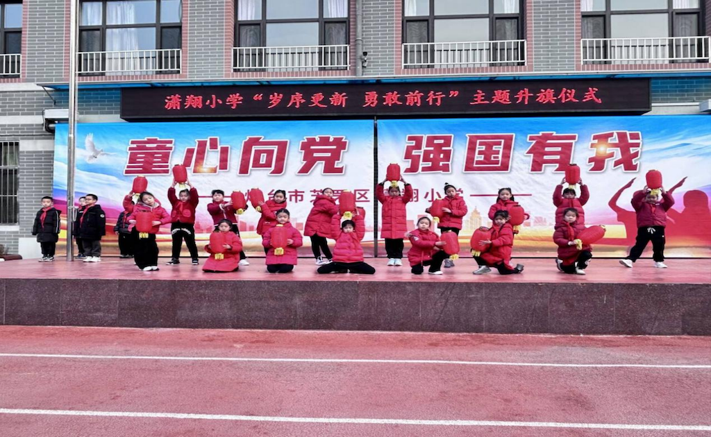 烟台融媒12月31日讯(通讯员 门慧波)冬阳暖暖,年味渐浓。为传承中华年俗文化,激发师生辞旧迎新的奋进力量,近日,芝罘区潇翔小学隆重举行了以“岁序更新梦想起航”为主题的升旗仪式。全体师生齐聚操场,在庄严的仪式中感悟初心,在灵动的舞蹈中品味年俗,共同迎接新岁的到来。
