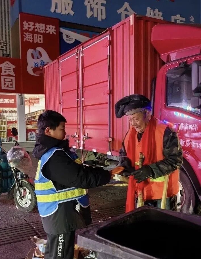 活动中,60杯热姜茶、60条红围巾、60副手套以及120双棉袜悉数送到环卫工人及凌晨坚守岗位的工作人员手中。“今天我让海阳又干净了一点,真的很开心。”“环卫工人爷爷太辛苦了,每天这么早就起来干活。”一句句稚嫩的话语,满是孩子们最真挚的感悟。