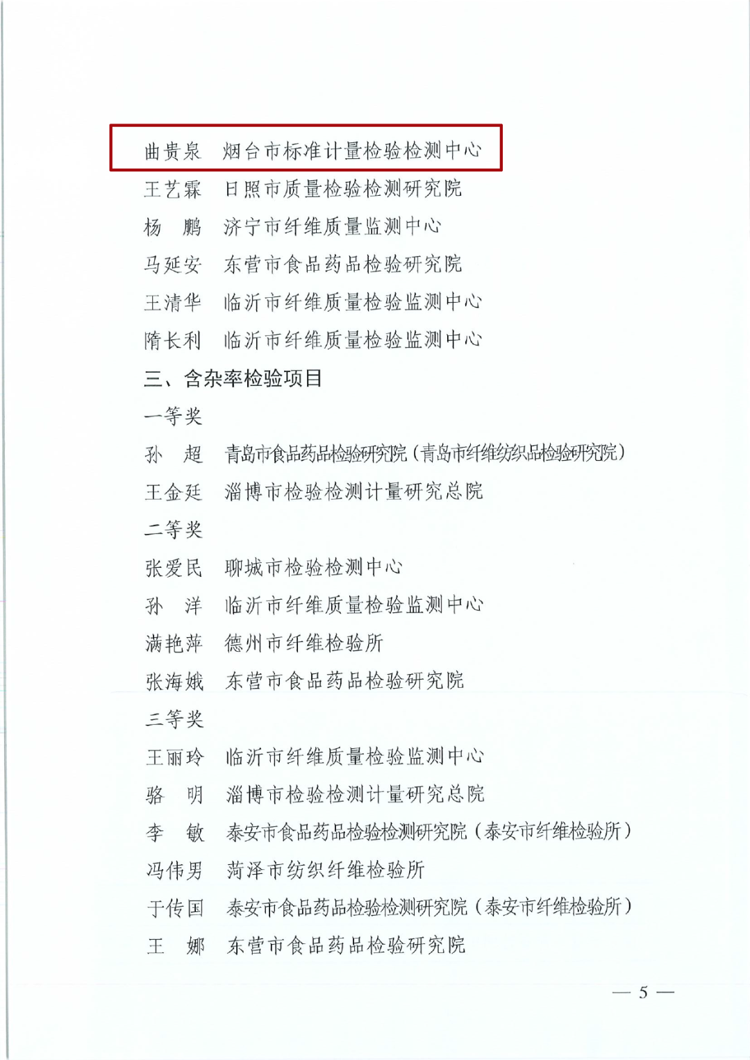近日,为深入贯彻落实中纤中心《纤维质量监测机构能力提升三年行动方案》和省市场监管局“四抓四提”作风建设工作要求,由山东省纤监中心主办的2025年度新疆监管棉公检现场“提技能 展风采”棉花检验岗位竞赛圆满落幕。市标准计量检验检测中心参赛队伍凭借过硬本领与出色表现,在竞赛中斩获多项殊荣,为烟台市场监管系统赢得了荣誉。