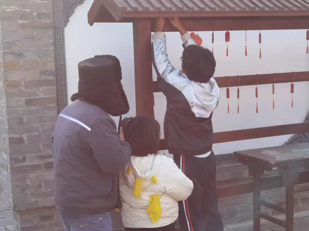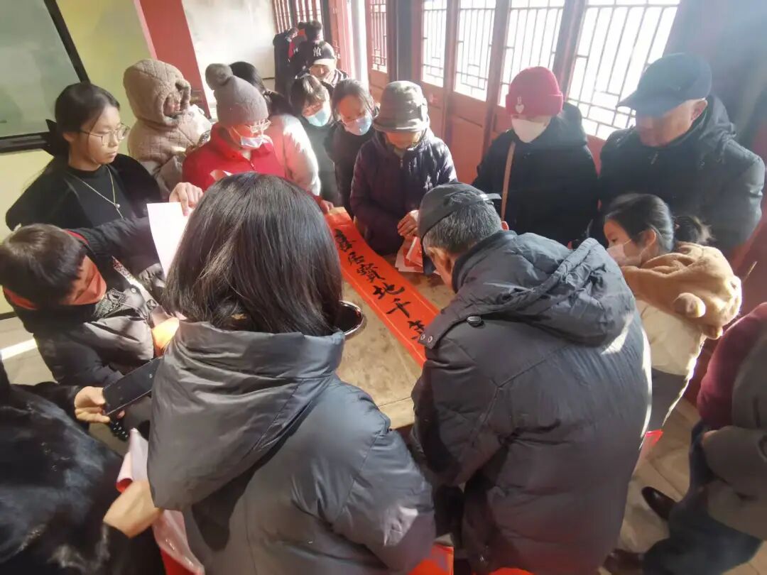 跟随着巡游队伍的脚步,拐进了尚书家风馆,这里的年味是沉静而深厚的。院里树上挂满了祈福牌,写满对新年的祝愿。孩子们体验了福字拓印,“我要把这个贴在我家门上!”在稚嫩的欢呼里,传统悄然生根。