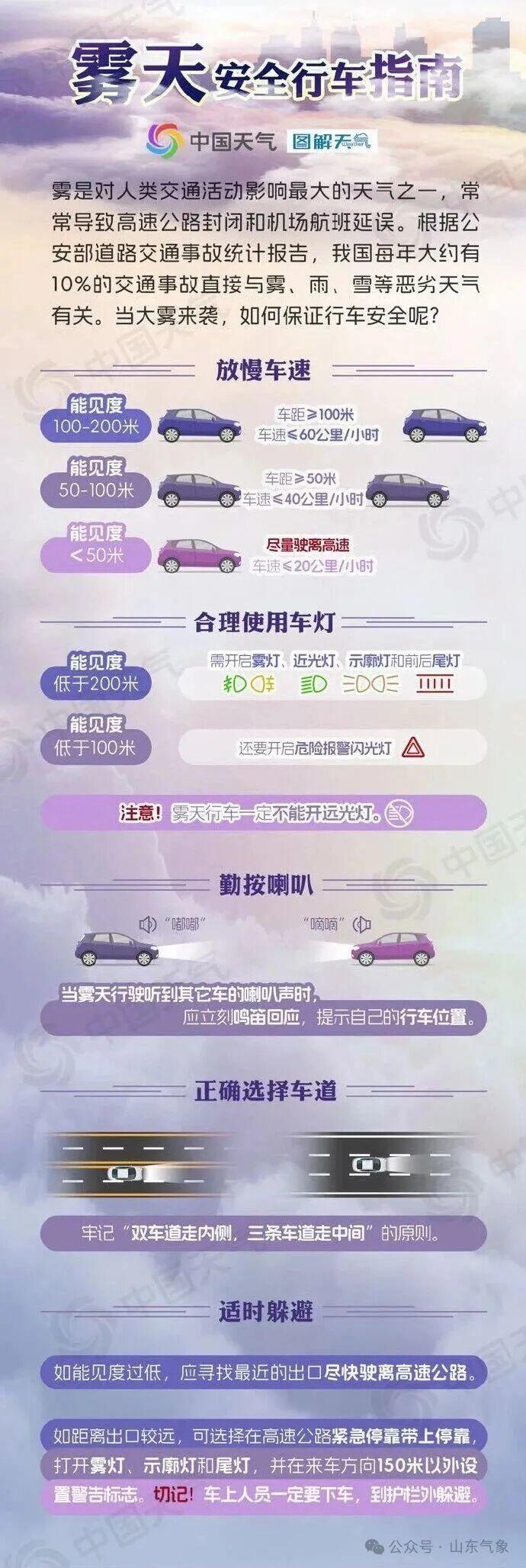 大雾是我国秋冬季较为常见的灾害性天气之一,具有出现几率高、发生范围广、危害程度大等特点。雾天行车有哪些注意事项?