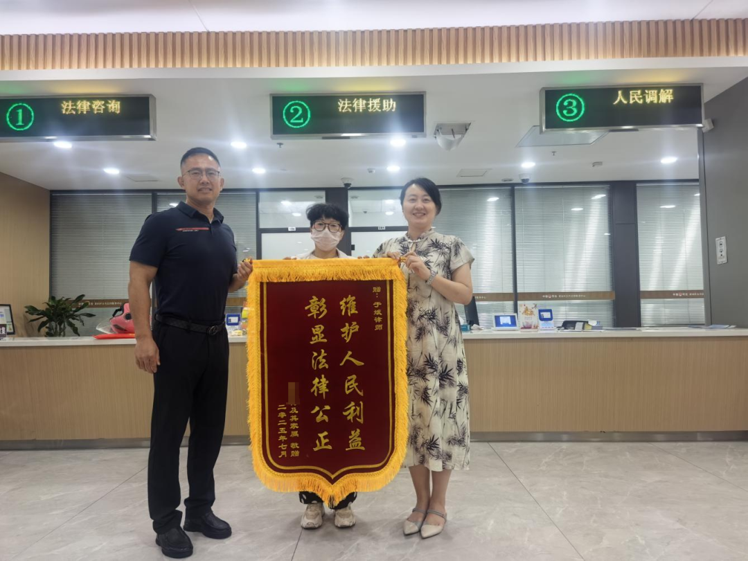 这面雨中的锦旗,不仅是对法律援助律师专业尽责、用心办案的认可,更是法律援助守护弱势群体、维护法律公平正义的真切体现。
