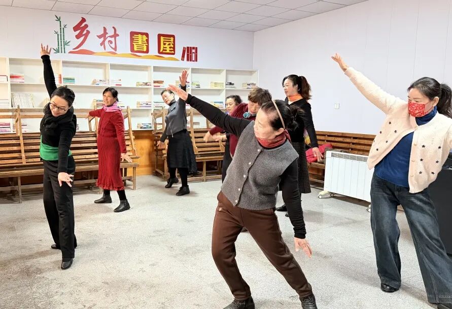 活动现场,梁老师凭借专业的舞蹈功底,从基础站姿、手部动作、脚步节拍入手,对《丰收中国年》舞蹈进行逐节拆解,耐心讲解每一个动作要领,手把手纠正姿势细节,将欢快喜庆的舞蹈动作转化为通俗易懂的教学步骤。参与群众热情高涨、认真投入,跟着老师的节奏反复练习,从生疏模仿到熟练掌握,现场欢声笑语不断,洋溢着热烈祥和的氛围。