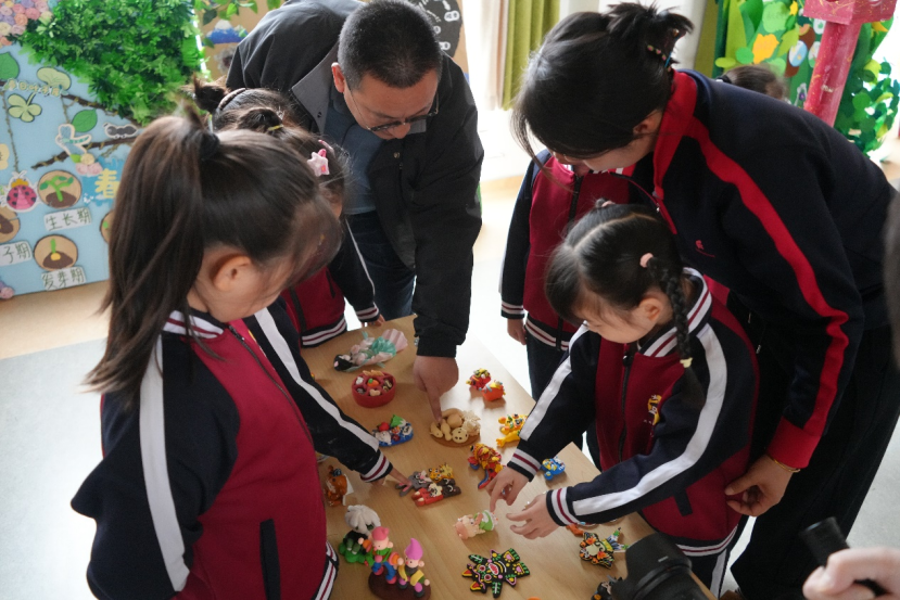 本次交流活动由中心王玉晓、姜红松、赵龙飞、刘晓丽等教师带领学生团队全程参与展示。一系列贴合幼儿身心发展特点的原创作品亮点纷呈:融认知启蒙与动手能力培养的玩教具,将数学逻辑、自然科学等知识融入趣味互动;主题鲜明的文化墙设计,以童趣化表达传递传统文化与生活常识;精细化打造的区域角方案,兼顾自主性与教育性,为幼儿提供多元发展空间。师生团队现场演示作品设计理念与使用方法,还与幼儿园教师围绕玩教具实践应用、教育价值转化等话题展开深入研讨。