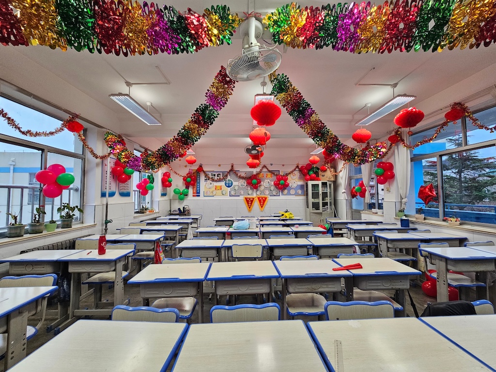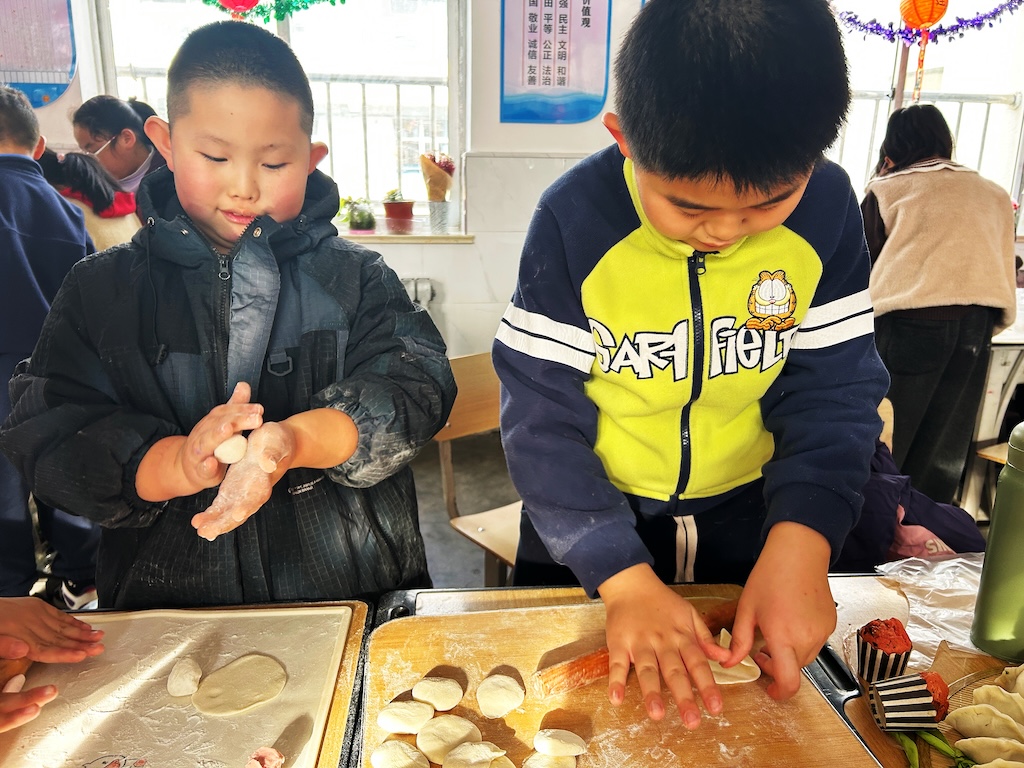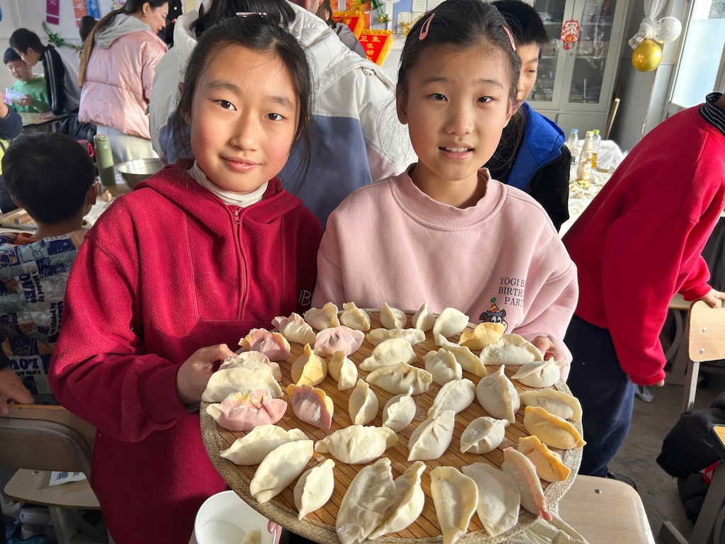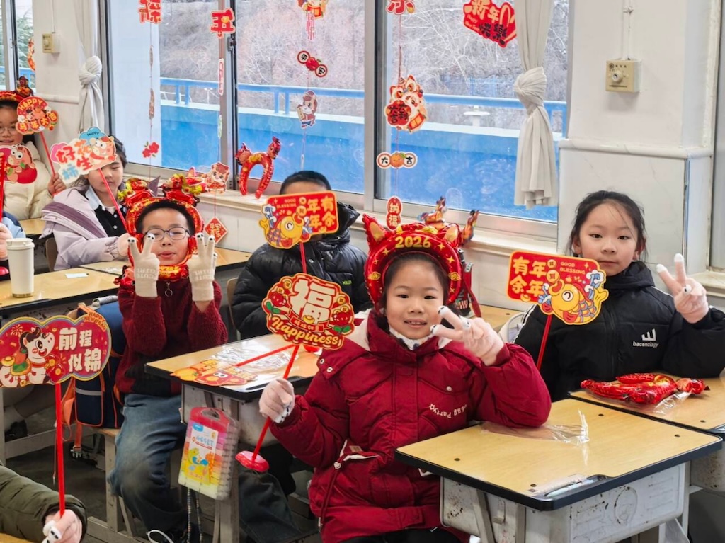 教师与家长携手装扮教室,精心准备的小礼物传递暖意,教室成为饱含家校温情的“新年乐园”。多个班级开展了包饺子、制糖葫芦、烘焙桃酥等劳动体验活动,孩子们在家长与教师指导下协作操作,既感受劳动乐趣、收获美食,更在互助中涵养友爱之心。联欢会上,歌舞表演、器乐展示、魔术小品等节目精彩纷呈,许多老师、家长登台与孩子互动,笑声与掌声响彻校园。学校领导也走进各班教室,为师生送上新年祝福,寄语孩子们怀揣梦想奋勇前行。此外,学校大队部发起亲子实践活动倡议,鼓励各家庭在回顾成长、展望新年中传递温情,夯实家校协作根基。