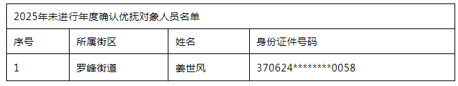 截至目前,我局通过多方尝试,有1名享受待遇的优抚对象至今无法联系或未进行年度确认,现公告如下: