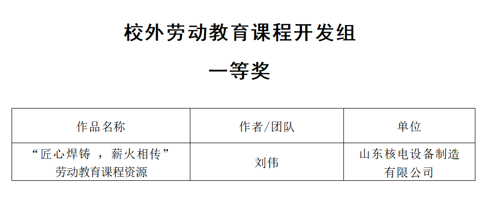 山东省总工会、山东广播电视台等单位公布了2025第三届山东省劳动教育课程资源开发竞赛获奖名单。烟台市职工刘伟以作品《“匠心焊铸 薪火相传”劳动教育课程资源》荣获全省校外劳动教育课程开发组唯一一等奖。