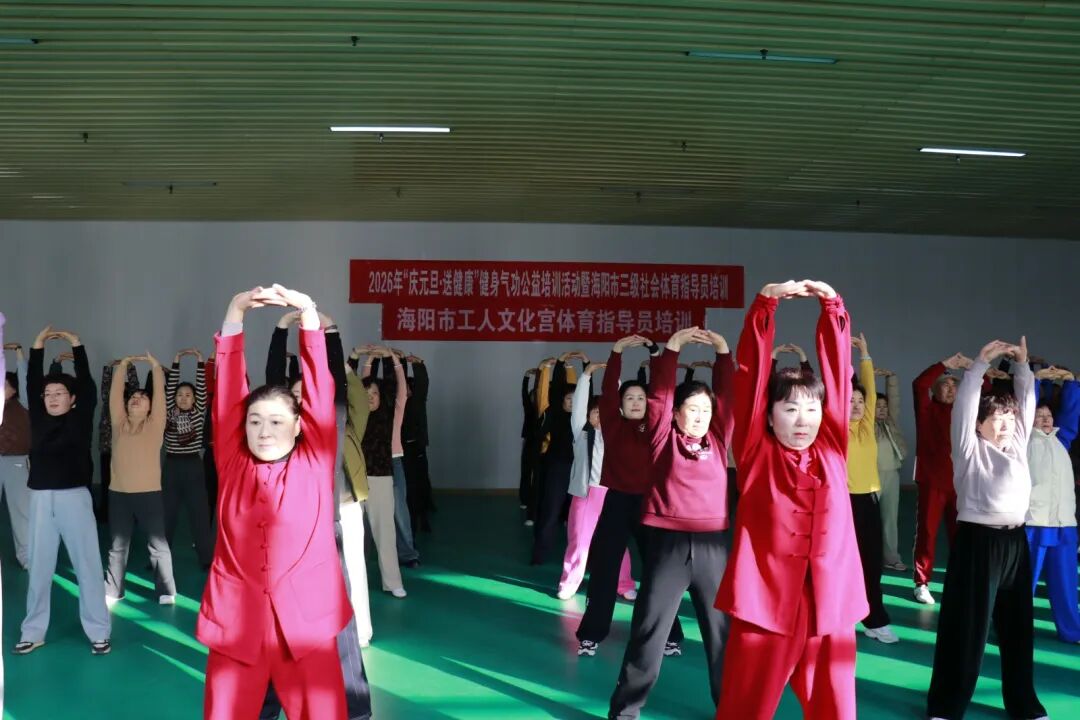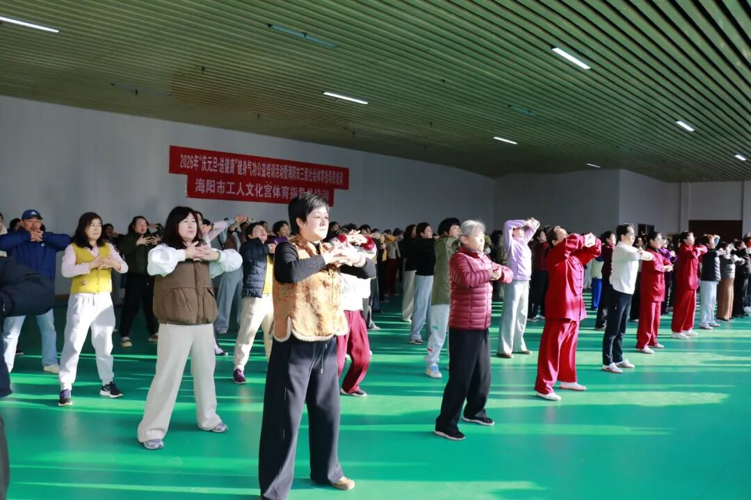 为深入贯彻落实全民健身国家战略,积极推动全民健身与全民健康深度融合,进一步丰富全市干部群众文体生活,由海阳市体育运动服务中心、海阳市老年大学、海阳市老年人体育协会联合主办的“气韵启新岁,健康迎新年”健身气功公益培训活动于2025年12月31日在海阳市工人文化宫举行开班仪式。本次活动以公益教学的形式,吸引了全市众多机关事业单位及城市社区健身骨干的热情参与,在运动中共同开启新年新征程。