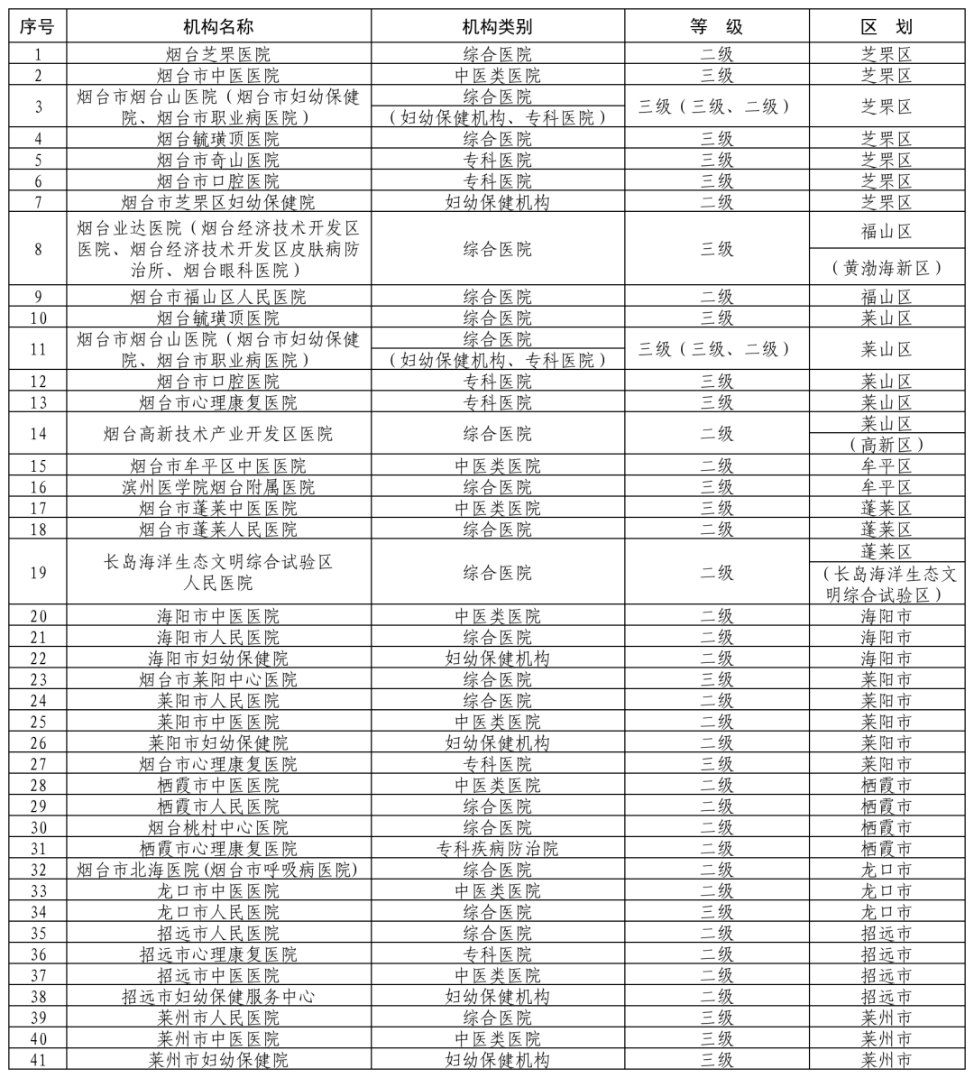 附件:烟台地区内的二级及以上公立医疗机构清单