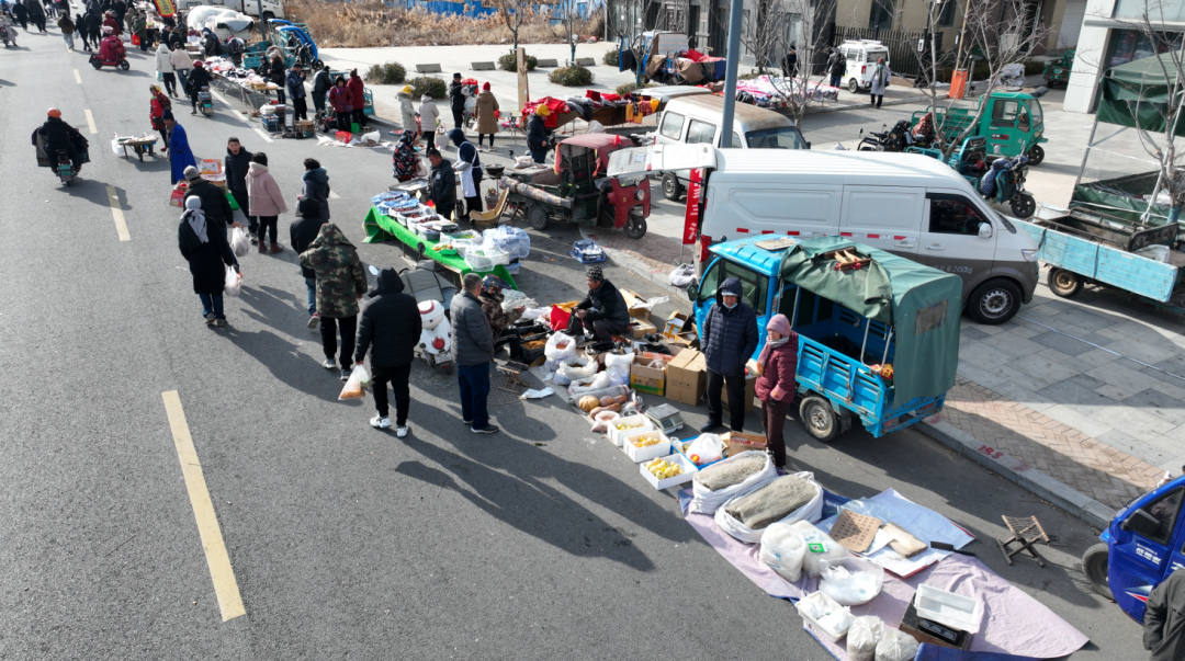 《周易・系辞》有云“日中为市,致天下之民,聚天下之货”,千年市集烟火绵延至今,在招远的冬日大集里热烈绽放。这里没有商超的规整,却有人声鼎沸的热闹,吆喝声此起彼伏,海产熟食、炸物点心香气扑鼻,水果蔬菜带着晨露鲜灵,福字春联映红眉眼,小到油盐酱醋,大到衣作物件,一应俱全。