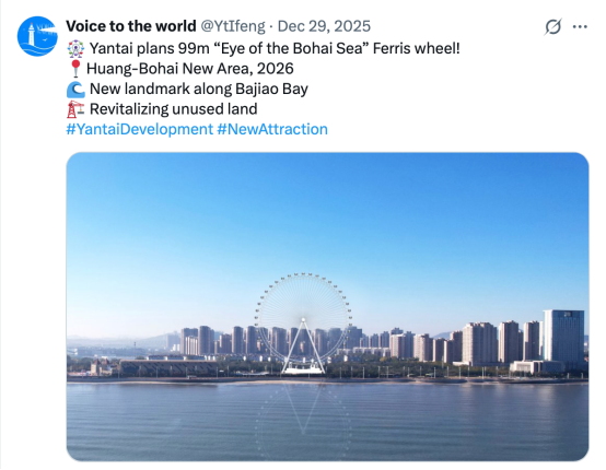 1.【凤凰网】烟台将建99米“黄渤海之眼”摩天轮打造新地标