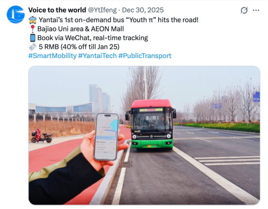 4.【凤凰网】烟台首条动态公交"青年π"上线八角大学城