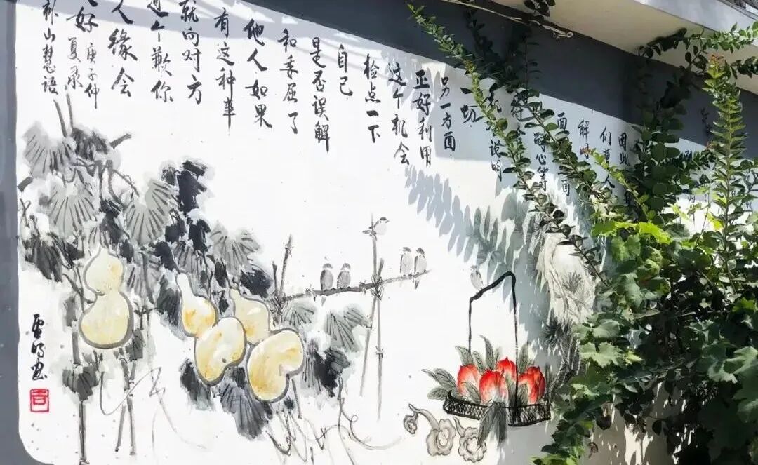 书画大师赵文竹的回归,则为西水夼村注入了更绵长厚重的文化底气。作为土生土长的西水夼人,赵文竹一直想为家乡做点贡献。张格庄镇修缮其闲置老宅,打造補山艺术馆,用于展示他的书画、玻璃画珍品。赵文竹带领团队,耗时3个月在村里临街墙面创作了700平方米的书画文化墙,以“恩德廉明惠”儒家核心价值为主题,融入国学经典和山水风光元素。