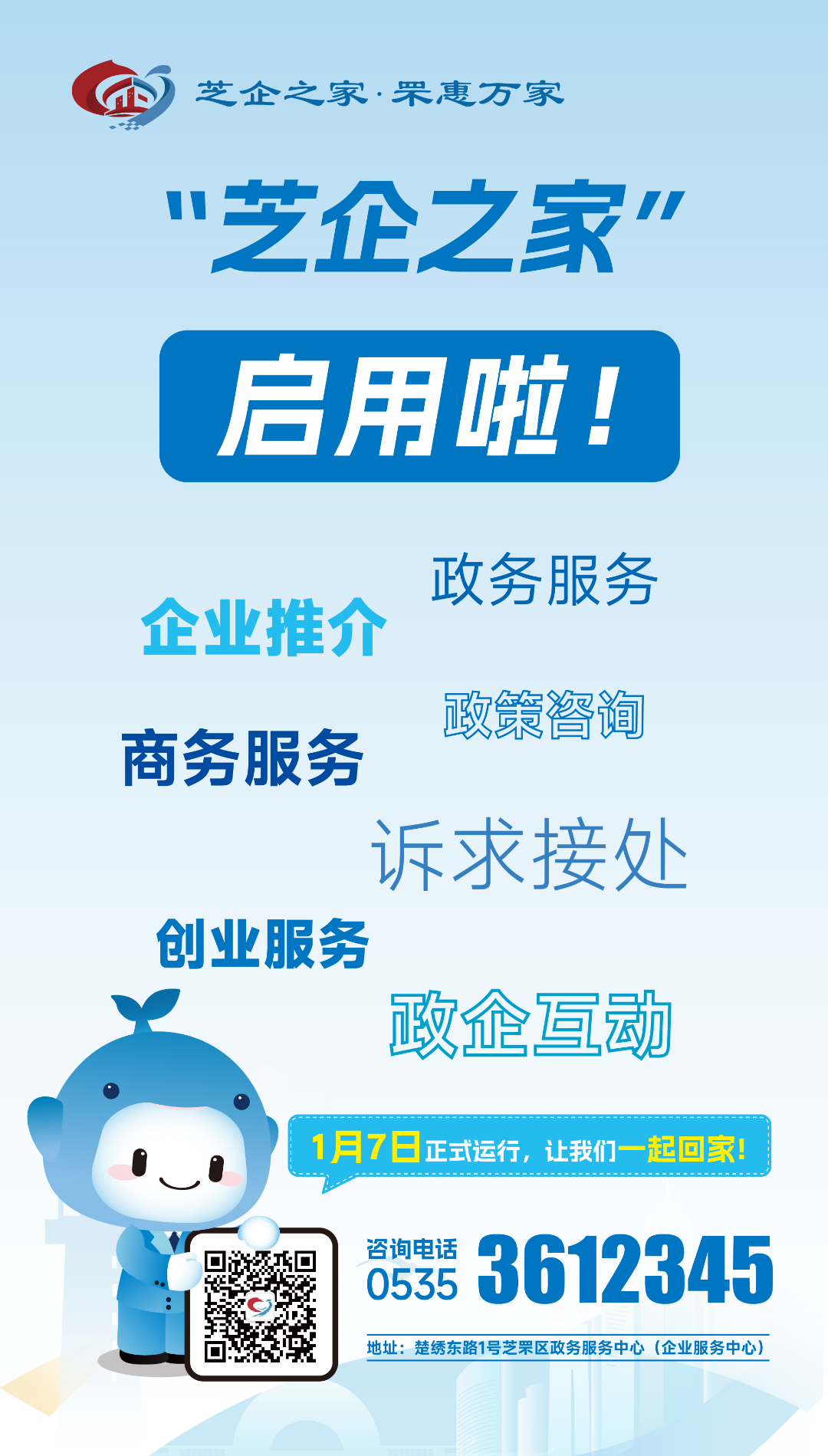地址:芝罘区楚绣东路1号政务服务中心(企业服务中心)