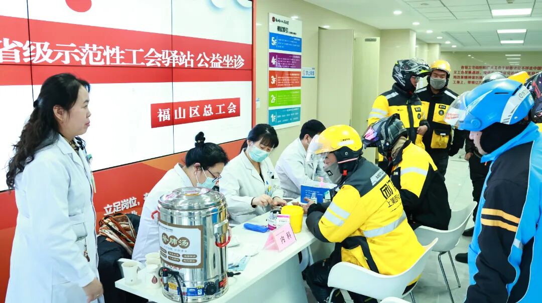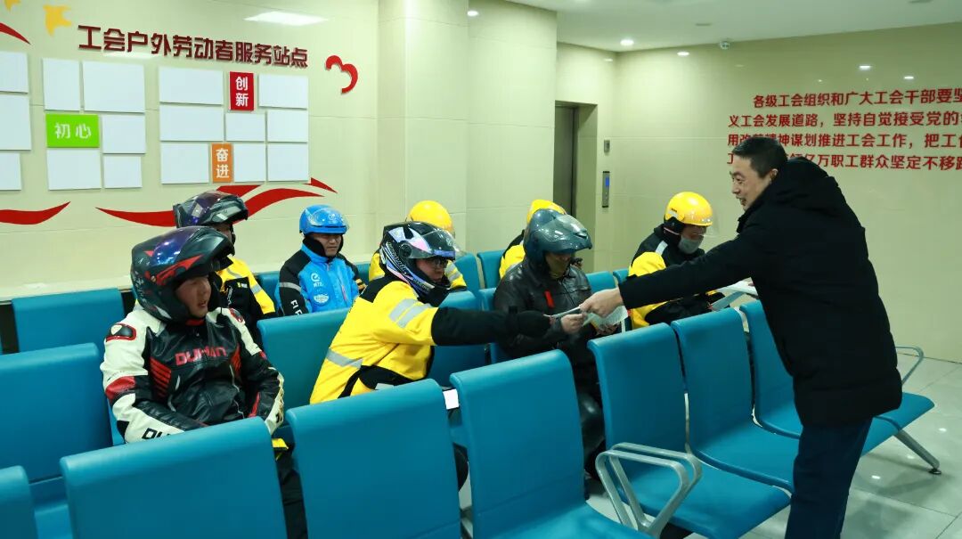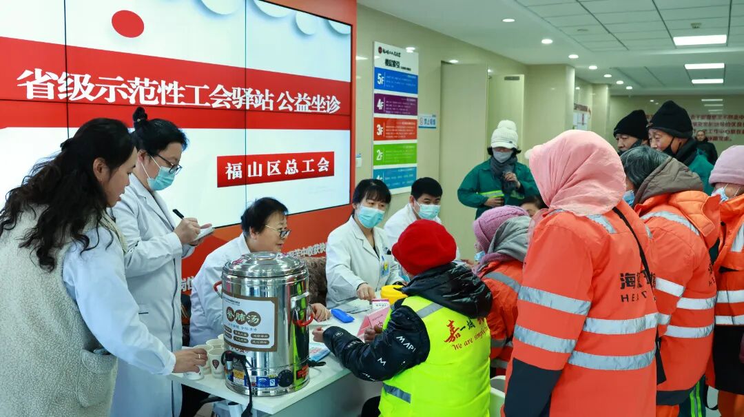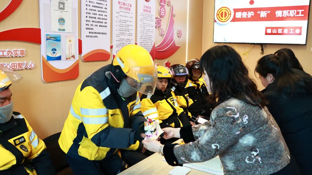 寒冬腊月,暖意融融。1月7日,烟台市福山区总工会省级示范性工会驿站化身城市“温暖港湾”,围绕“健康守护+甜蜜关怀+权益护航”三大主题,为快递员、外卖配送员、环卫工人、网约车司机等新业态群体及户外劳动者送上公益坐诊、蛋糕分享、法律咨询等系列服务。60余名城市“奔跑者”在寒风中感受到了实实在在的关怀与温暖。