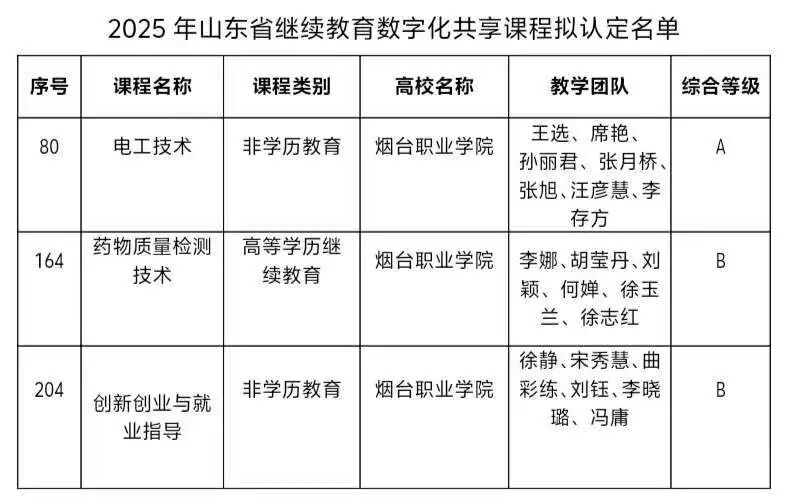 近日,山东省教育厅公布了2025年度继续教育数字化共享课程遴选结果。经高校申报、专家评审等环节,烟台职业学院3门课程入选,入选总数实现新突破。