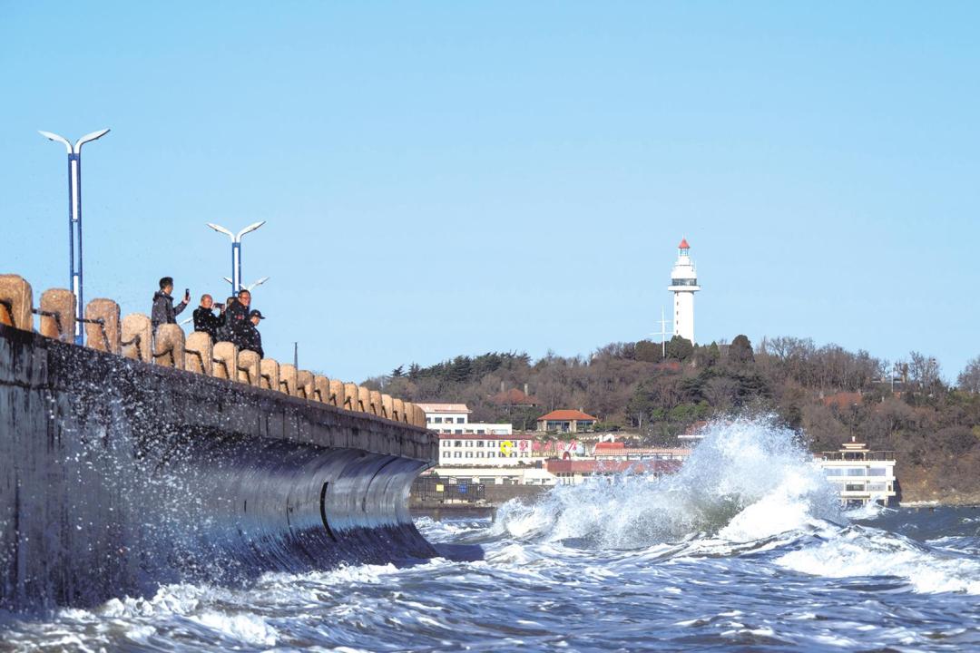 烟台第一海水浴场的岸边,总聚集着不少慕名而来的游客。他们目光追随着眼前的浪涛,沉浸式享受滨海时光。孙红燕 摄