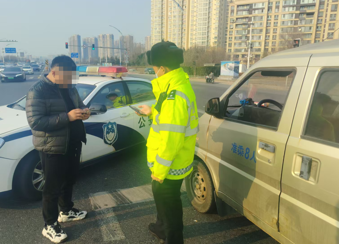 2025年12月27日14时许,黄渤海大队指挥中心接到预警:一辆车牌号为鲁F0***5的小型面包车已达强制报废标准,正在辖区内行驶。民警闻令即动,迅速锁定目标车辆,并在确保安全的前提下成功将其拦截。