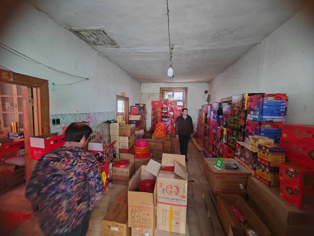 2025年12月31日,根据群众举报,莱阳市应急管理局、公安局联合穴坊镇政府,对穴坊镇村民李某非法储存售卖烟花爆竹开展执法检查,当日共查获大量非法储存的烟花爆竹。