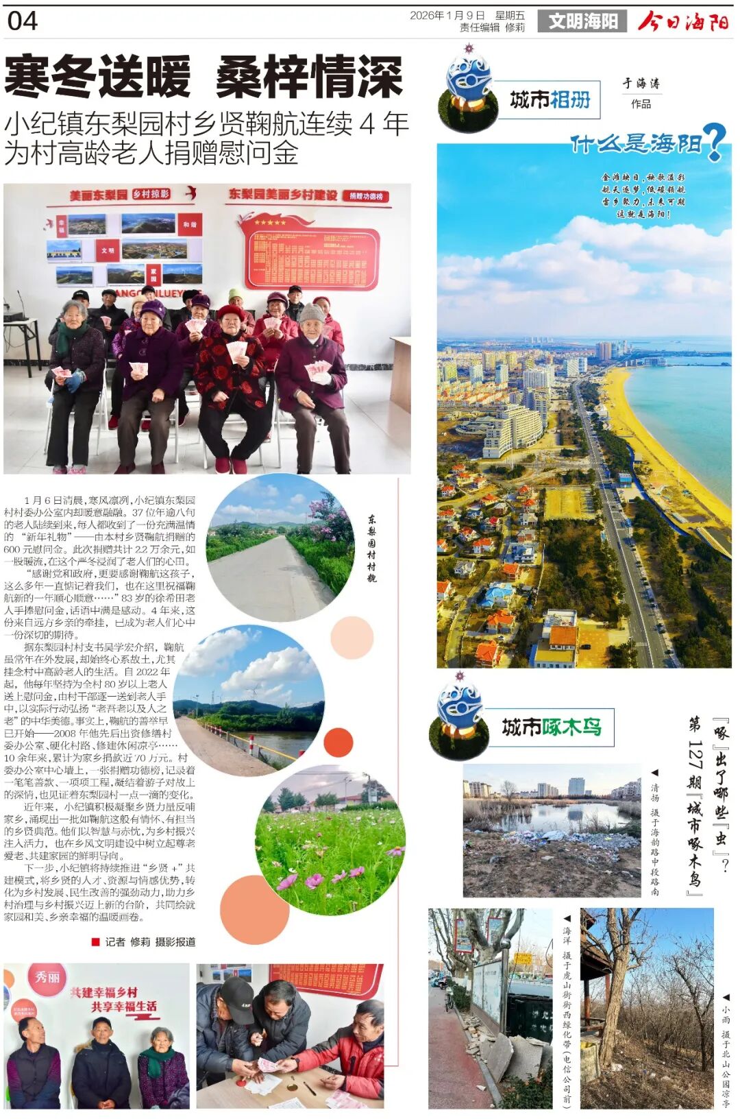 捐资70万助村建!海阳小纪东梨园村鞠航的桑梓情