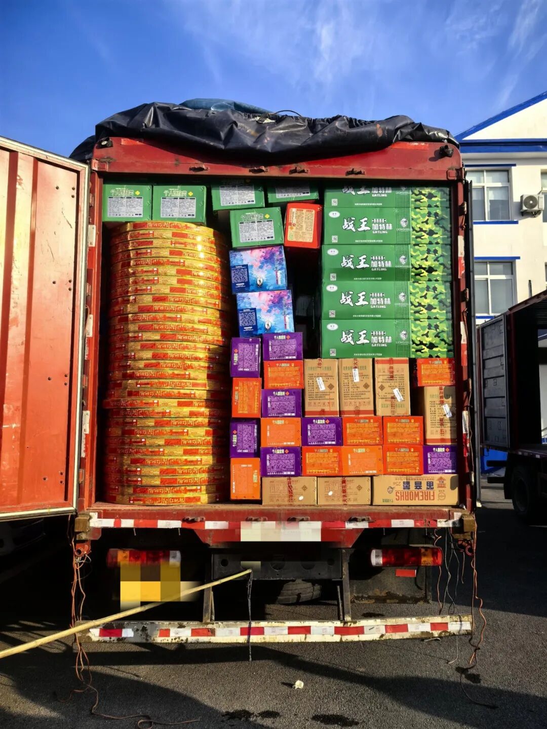 巡逻民警立即示意驾驶人李某、丁某停车,并对车辆装载物品进行检查。经查,李某在未取得任何合法资质及运输手续的情况下,违规装载烟花爆竹744箱,其行为已严重威胁公共安全。