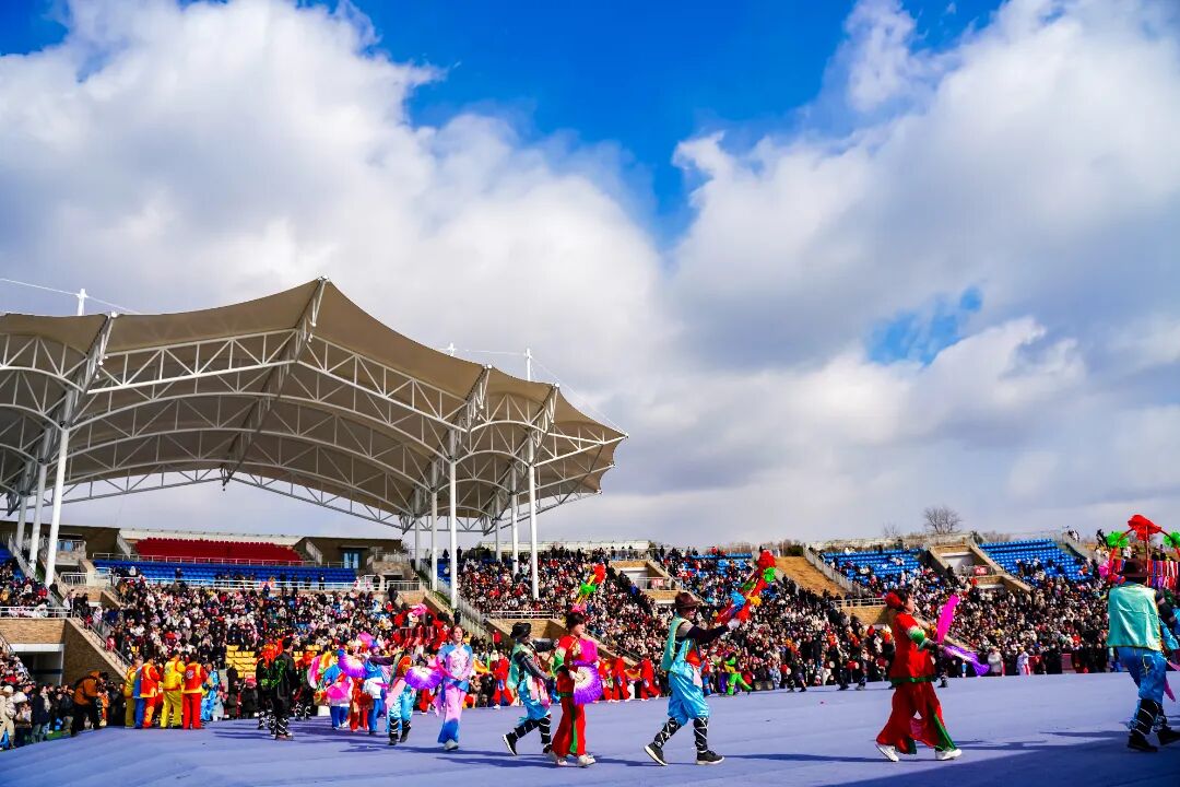 2月4日,正月初七,海阳河清岛体育场内人流如织。济南商河滨河秧歌艺术团、青岛胶州秧歌队、陕北安塞腰鼓表演队、广东潮阳文光桃园英歌队和5支海阳秧歌队交叉进行献艺斗舞,共襄“全国秧歌汇海阳”的文化盛会。活动单日接待游客3万人次,线上线下参与达70万人次。