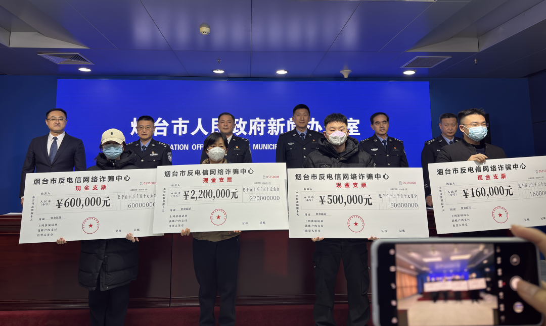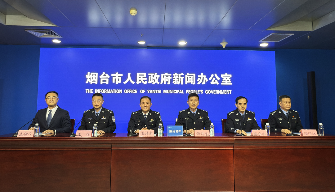 1月9日,烟台市人民政府新闻办公室举行新闻发布会。烟台市公安局党委委员、副局长王诗新,烟台市公安局刑侦支队支队长任俞丞,烟台市公安局治安支队政委王辉,烟台市公安局交管支队政委郭兆参,烟台市公安局禁毒支队支队长潘洪林共同出席发布会,通报全市公安机关“冬季守护”专项工作开展情况,现场返还部分群众被骗资金,并回答记者提问。