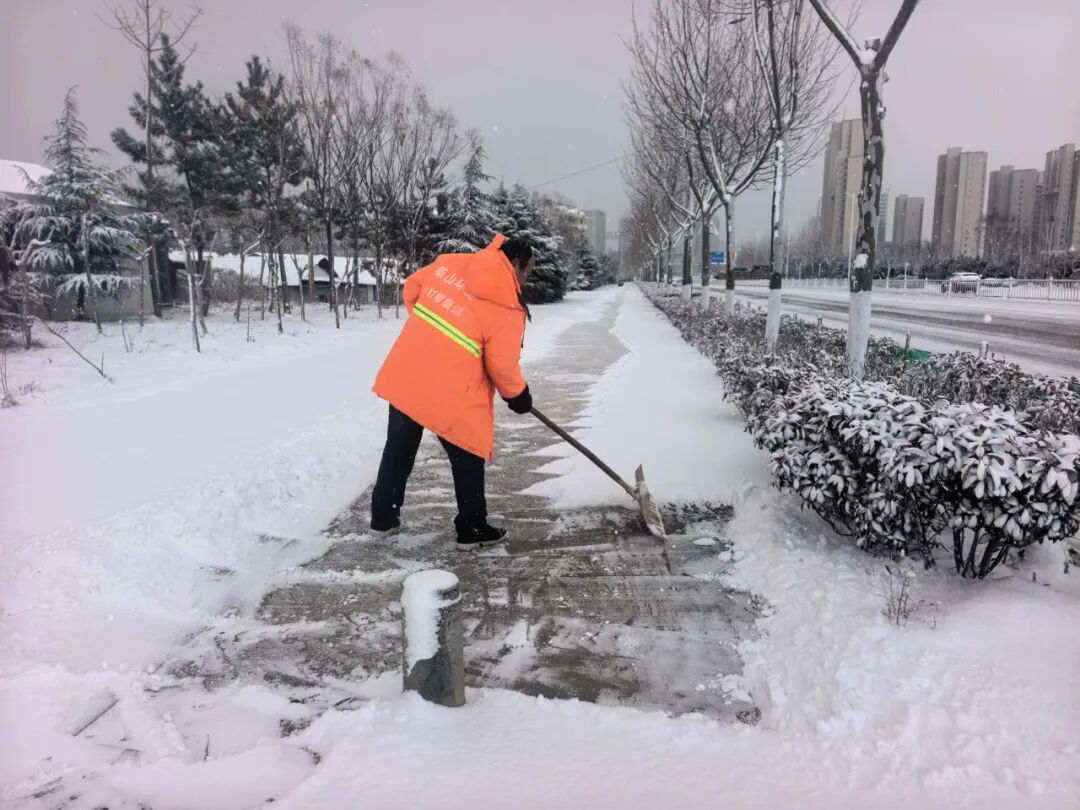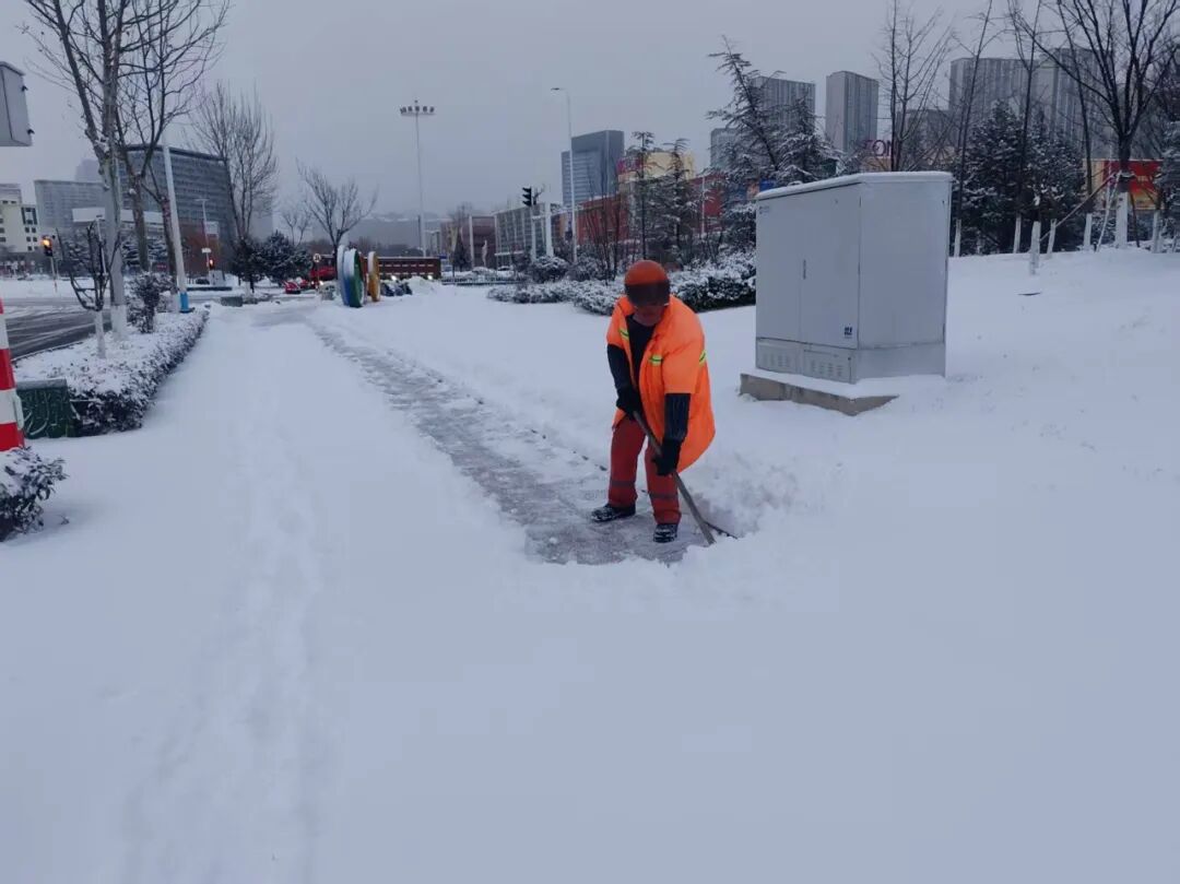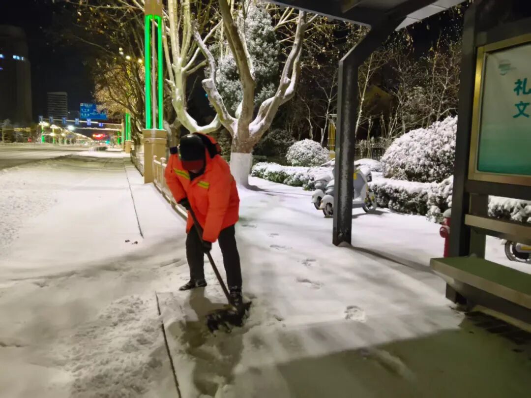 区住房城乡建设局组织85家物业公司迅速启动应急预案,快速集结人员力量,针对小区主干道、单元门出入口、地下车库坡道、垃圾分类点等关键节点,展开系统化清雪作业。同时,重点对公共设施进行全面检查和防护,确保居民生活不受影响。物业人员以“贴心、细心、暖心”的服务,筑牢社区居民出行的“第一道防线”,让清雪不仅有速度,更有温度。