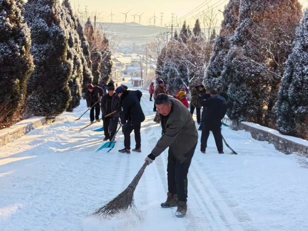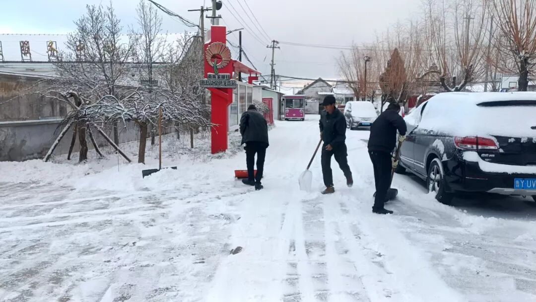 解甲庄街道组织人员21名、清雪车7台,清理道路40余万平方米,重点保障主次干道、医院、学校等区域畅通。各村党支部同步发动群众力量,全民携手护出行。