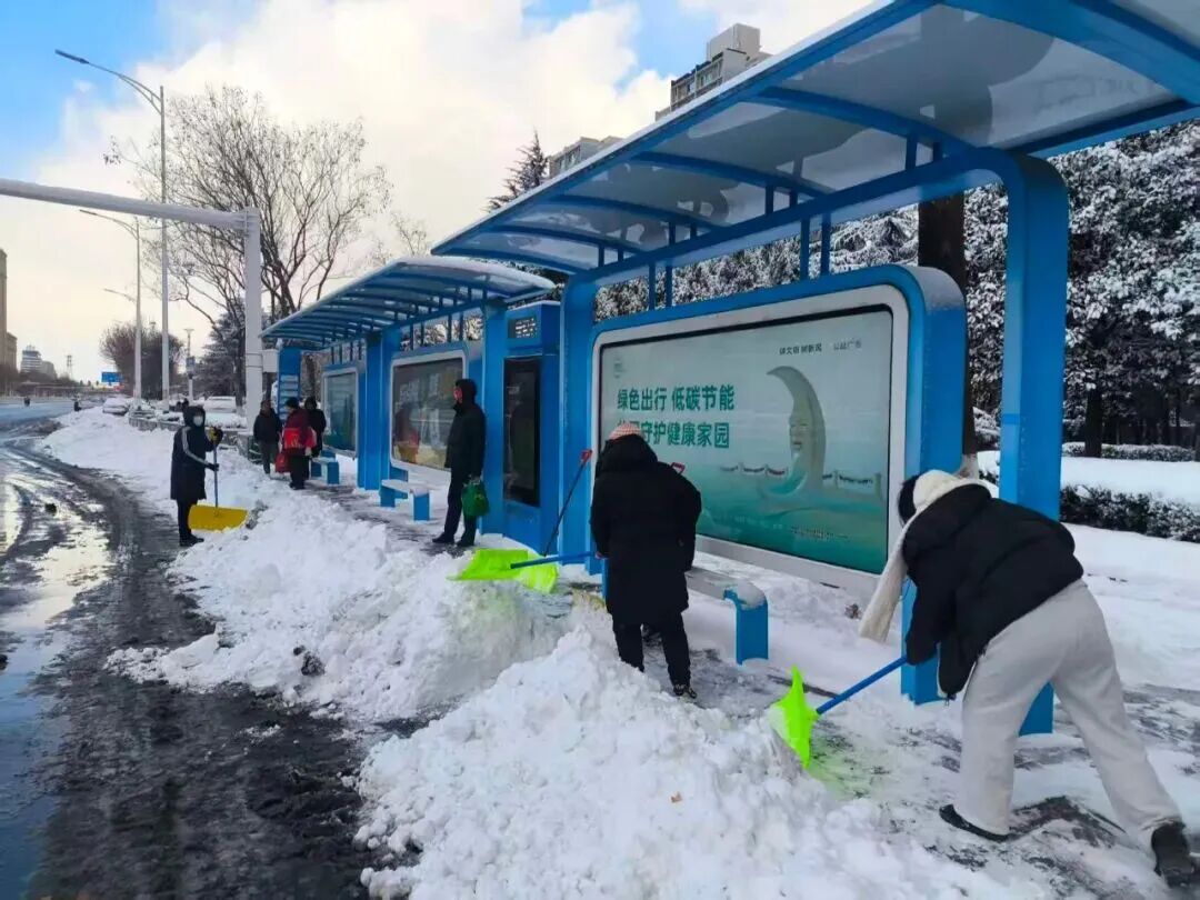 初家街道集结800余人次和20余台设备,采取"人机协同"模式,高效完成10余处背街小巷、70余处公交站点的积雪清理。