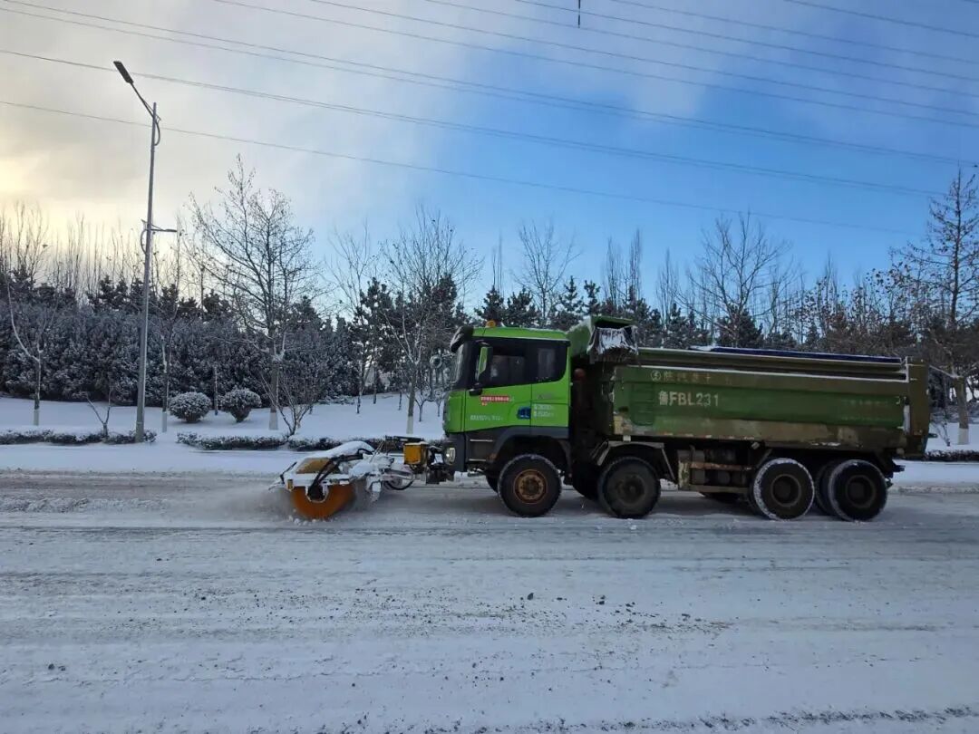 滨海路街道领导班子一线指挥,采取"机械为主、人工为辅"模式,组织多方力量开展扫雪除冰行动。
