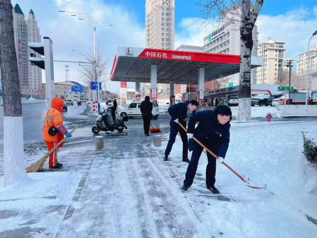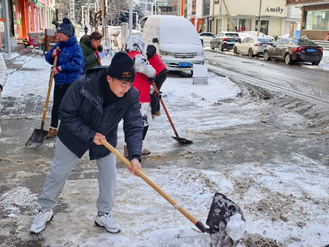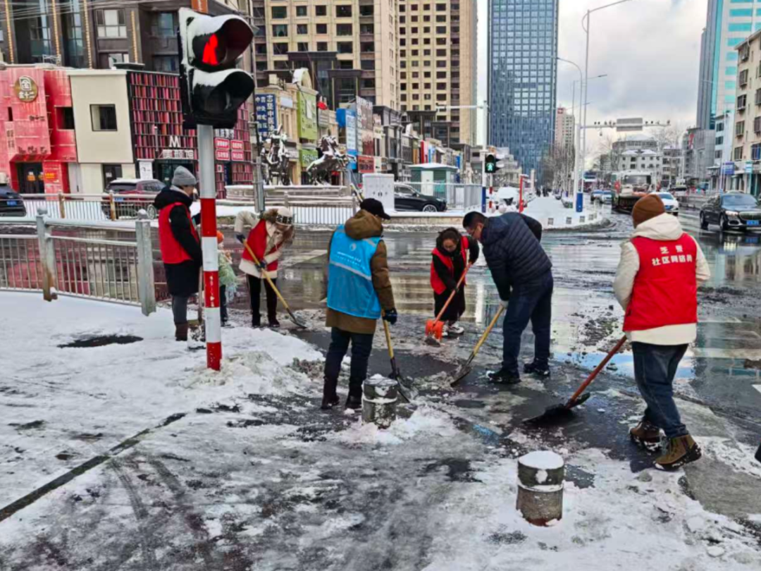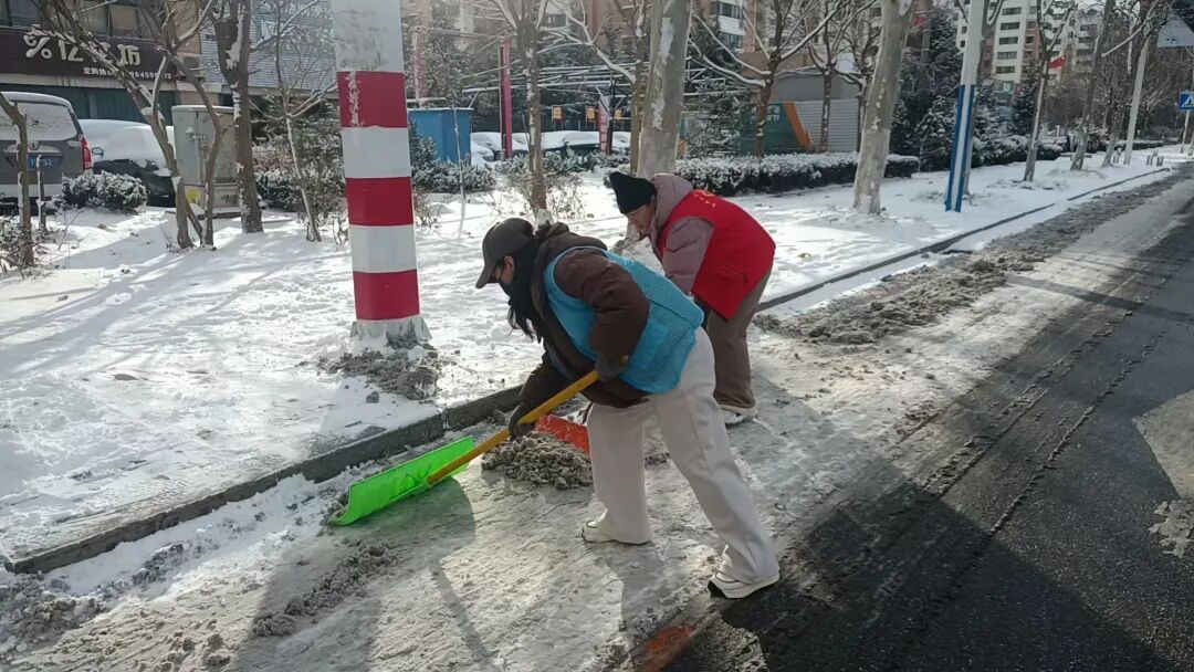 向阳街道友谊街社区清理建昌南街与胜利路路口积雪