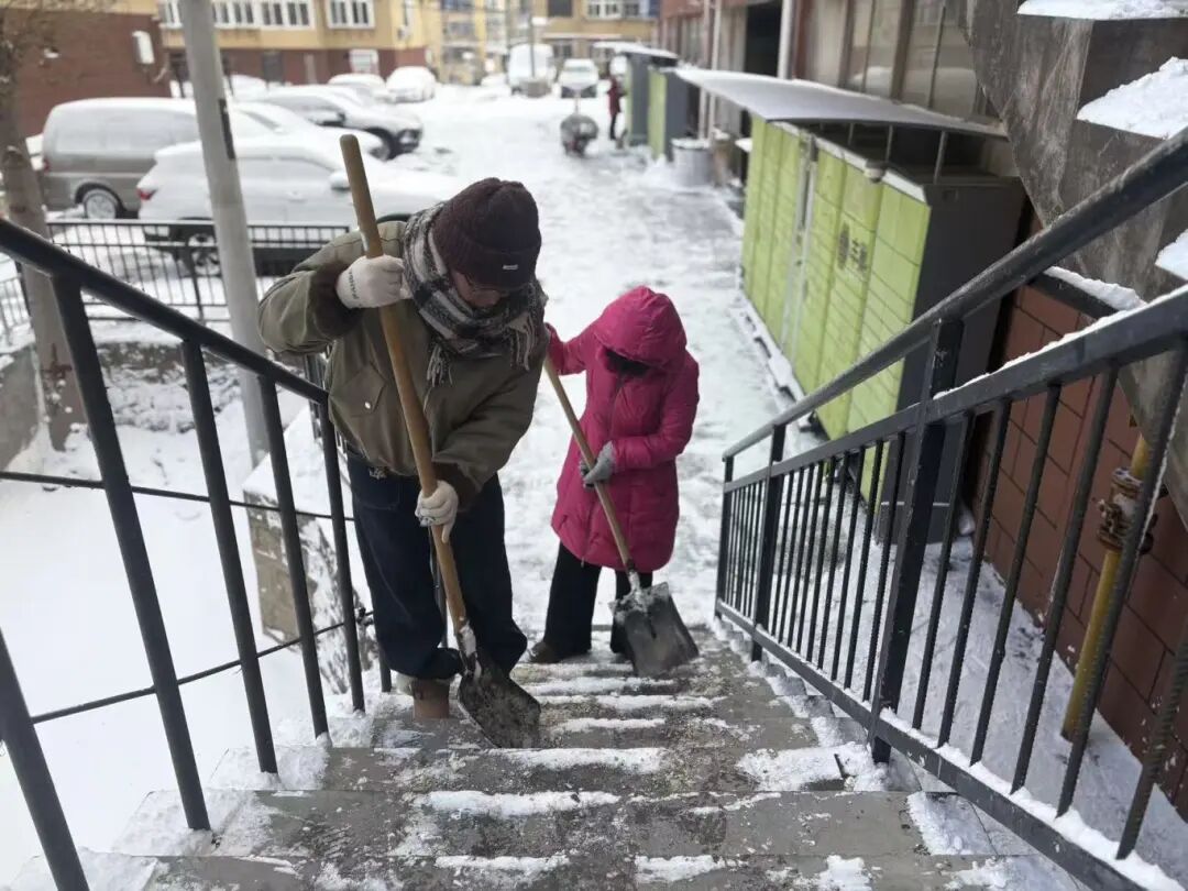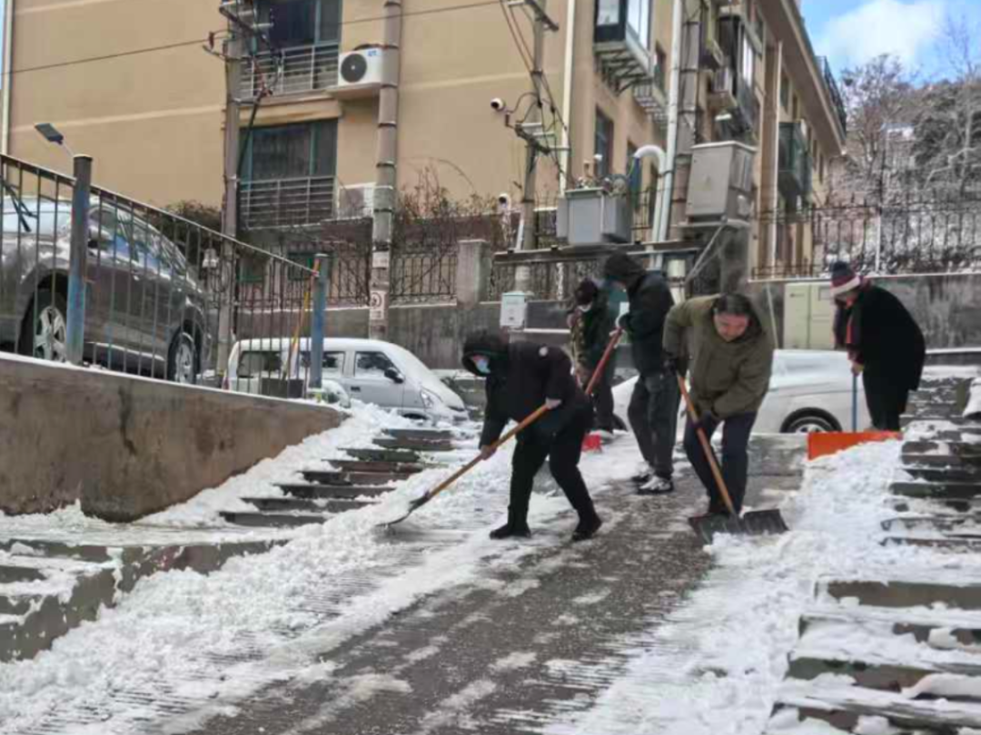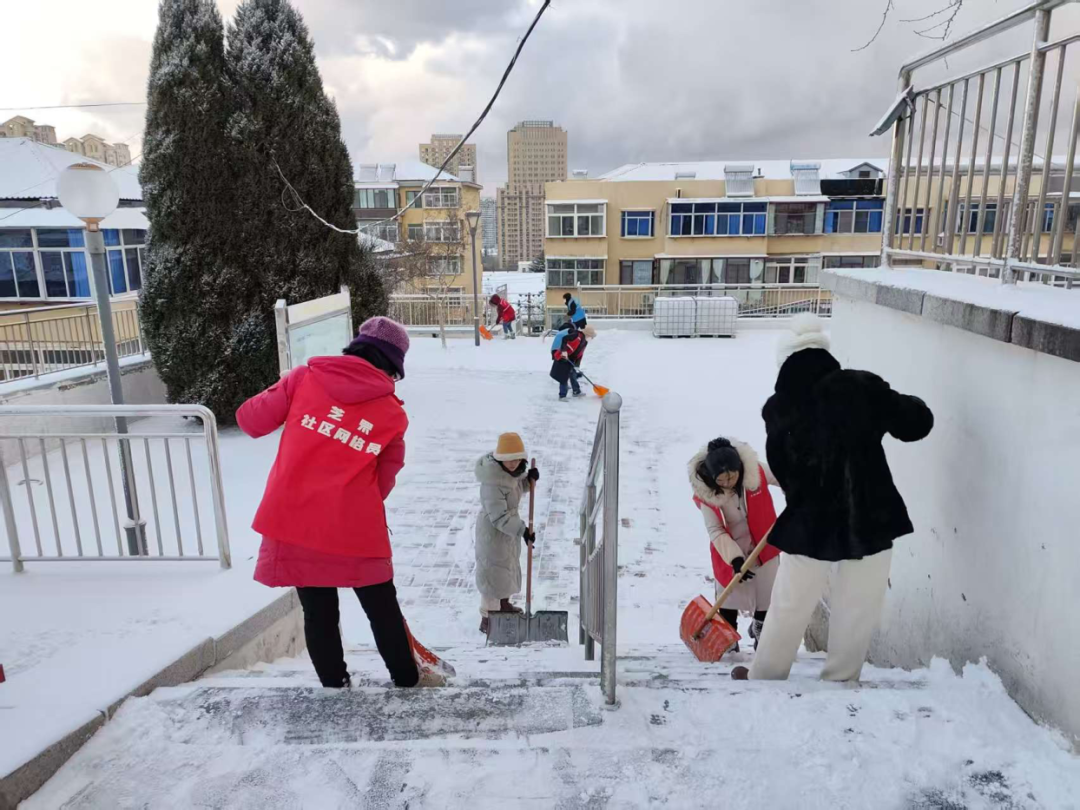 凤凰台街道东台社区清扫台阶、背街小巷等区域积雪