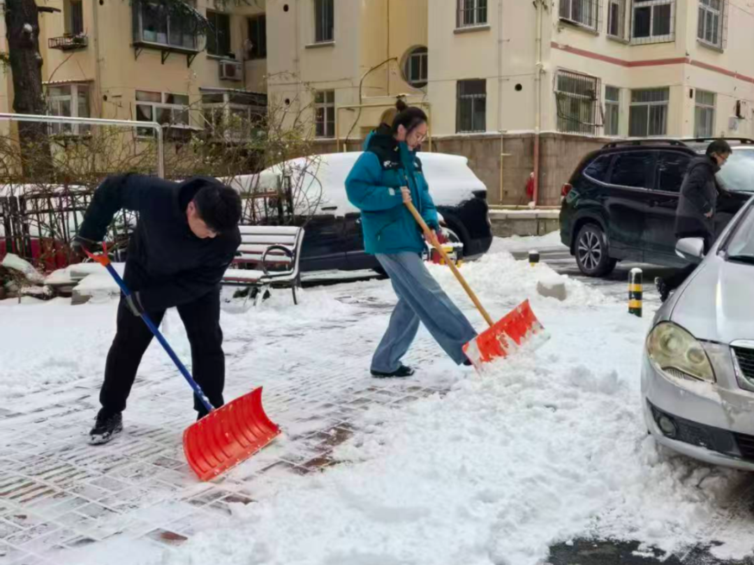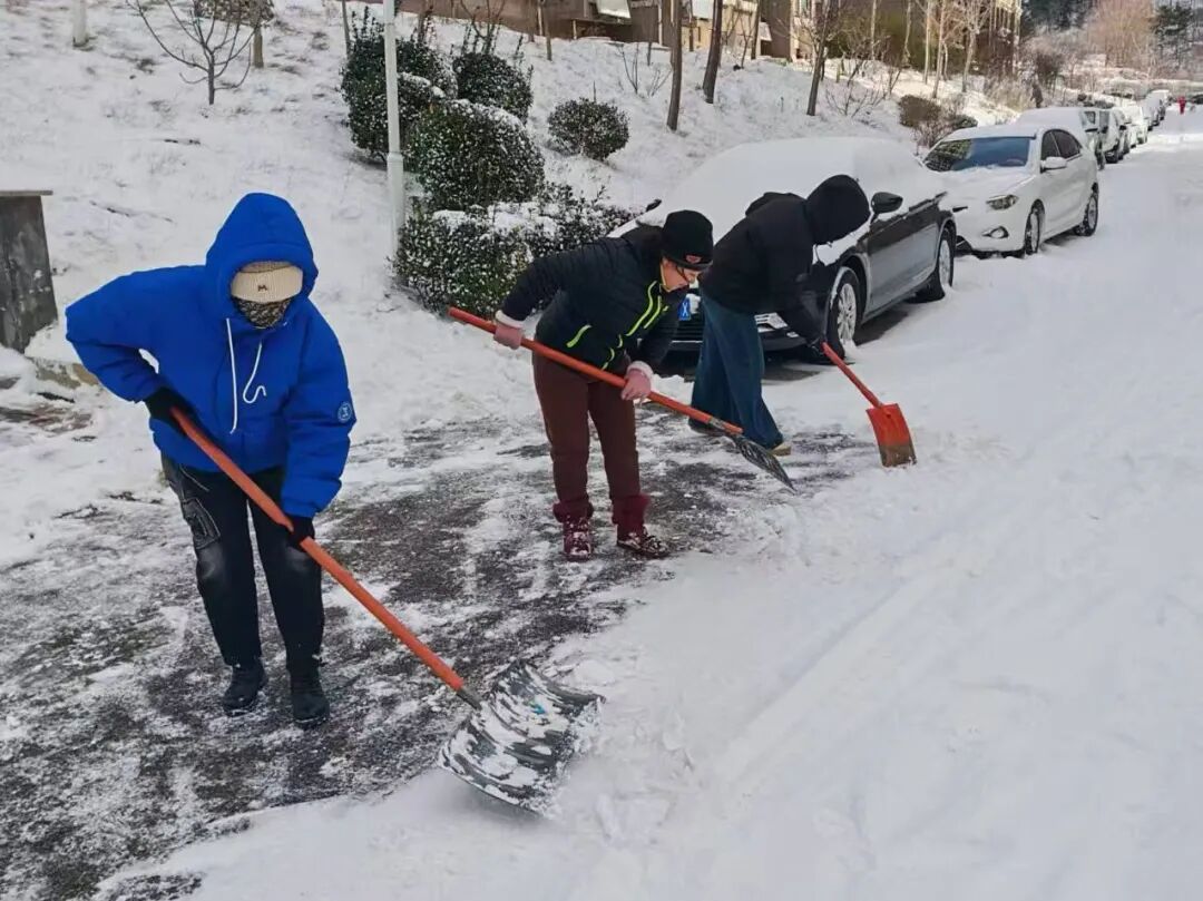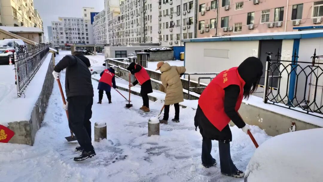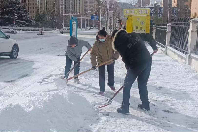 黄务街道三和社区清理小区主出入口、背街小巷积雪