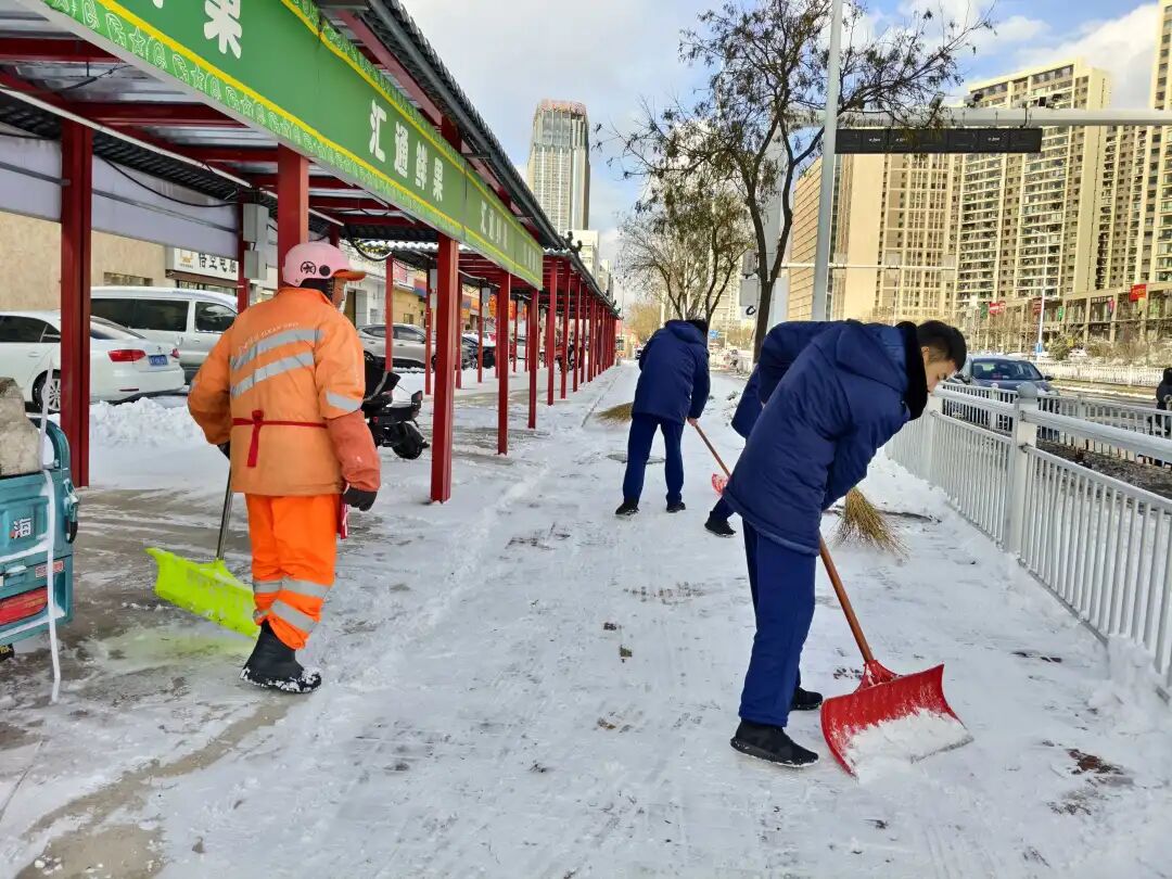 只楚街道锦城社区清扫主干道、周边公交站点积雪