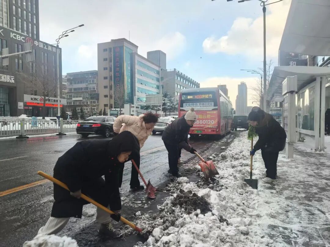 世回尧街道鲁峰社区组织志愿者清理辖区公交站点积雪