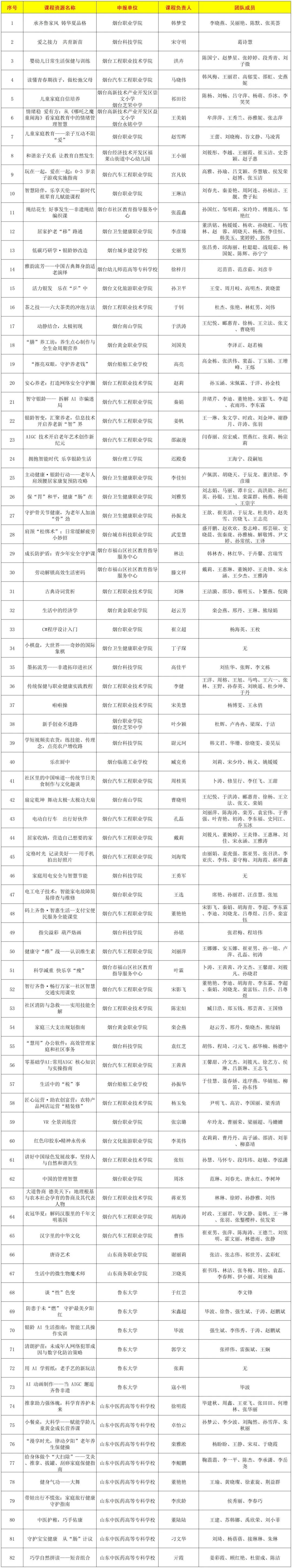 优秀课程资源名单(烟台市)