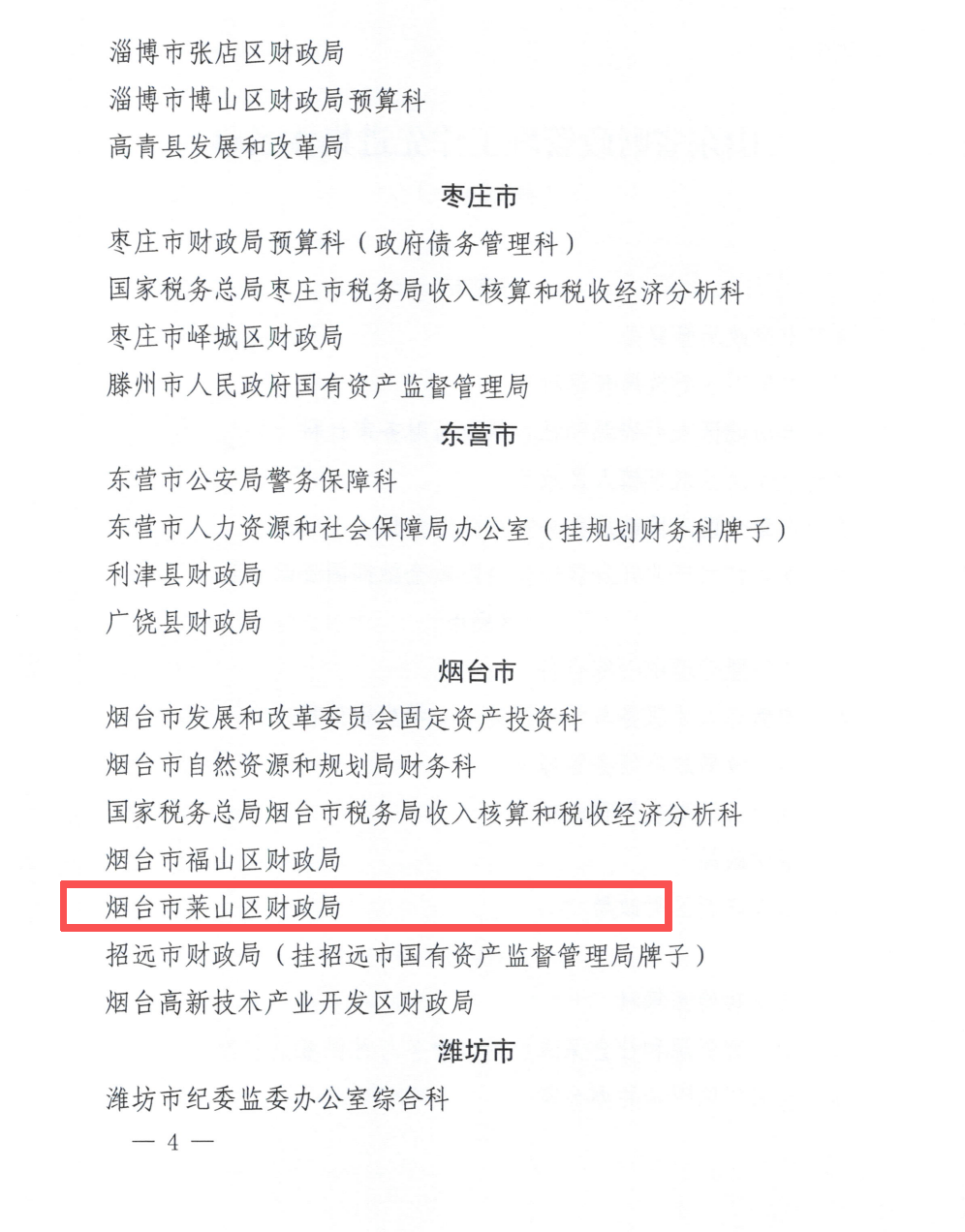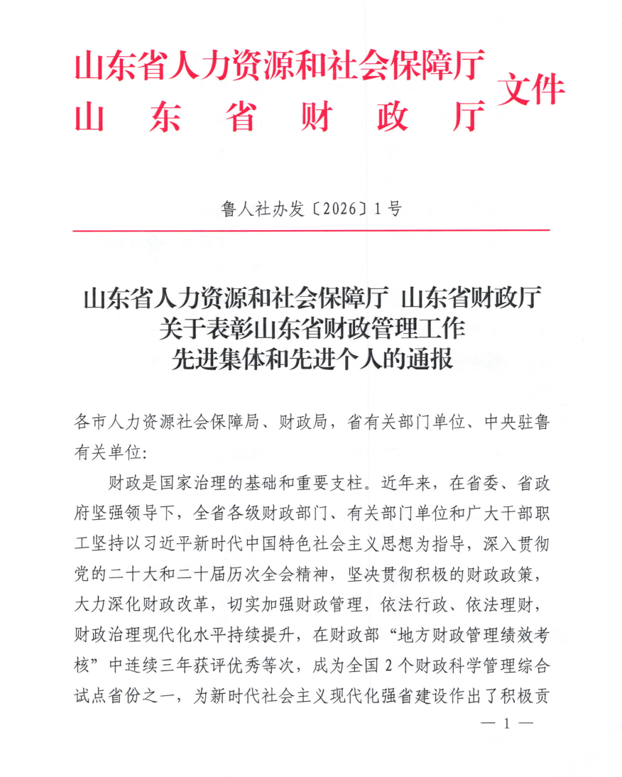 近日,山东省人力资源和社会保障厅、山东省财政厅联合印发《关于表彰山东省财政管理工作先进集体和先进个人的通报》,烟台市莱山区财政局获评“山东省财政管理工作先进集体”荣誉称号。