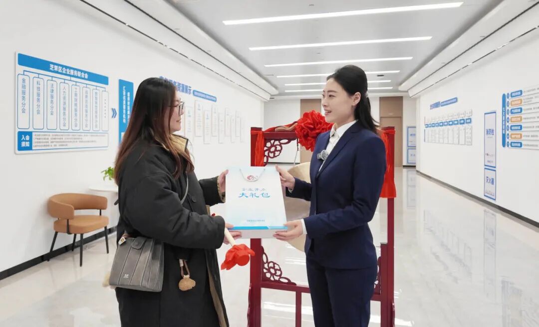 据了解,芝罘区企业服务中心不仅为企业开业准备了注册打卡点位,还为企业精心准备了“入门即享”精准服务,构建了一套无缝衔接的护航体系。企业完成注册后,便会收到企业服务中心准备的“企业开办大礼包”,内含《致新开办企业掌舵人的一封信》《芝罘区企业服务中心“护航新企”免费权益专享卡》和芝罘区企业服务中心宣传页、定制印章袋以及一套免费刻制的印章等,让新企业能够及时了解可以享受的各项权益以及政策,感受到“芝企之家”带来的“娘家人”般的关怀与温暖。